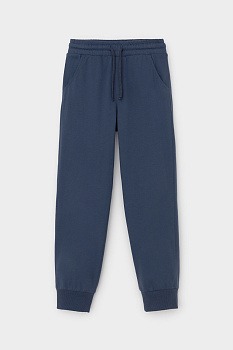 Брюки для мальчика из высококачественного трикотажного полотна. Пояс на резинке регулируется по ширине с помощью шнурка. По бокам два удобных кармана. Внизу эластичные манжеты.