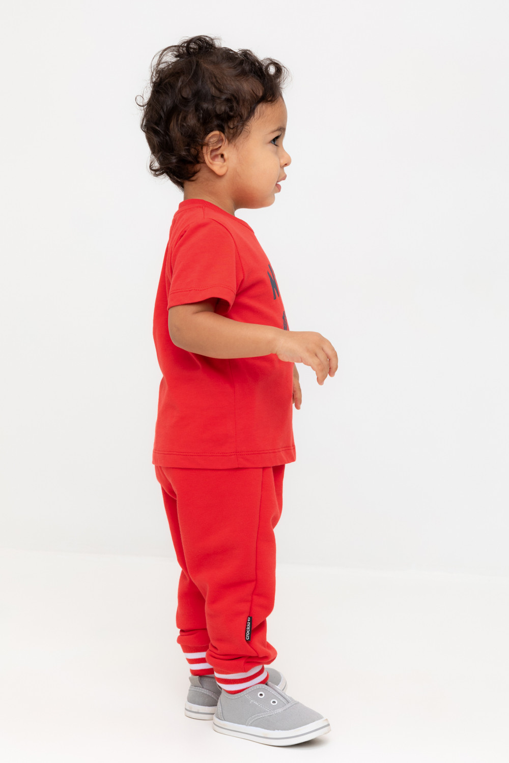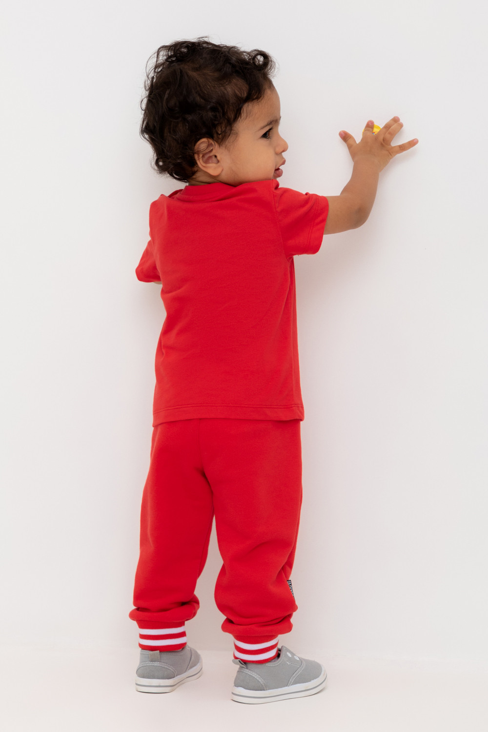 Объёмные брюки для мальчика из мягкого петельчатого трикотажа. В составе 80% натурального хлопка и 20% полиэстера, при этом полиэстер ввязан внутрь по особой технологии и не соприкасается с кожей. Эластичный пояс на резинке регулируется по ширине с помощью шнурка, внизу эластичные манжеты.