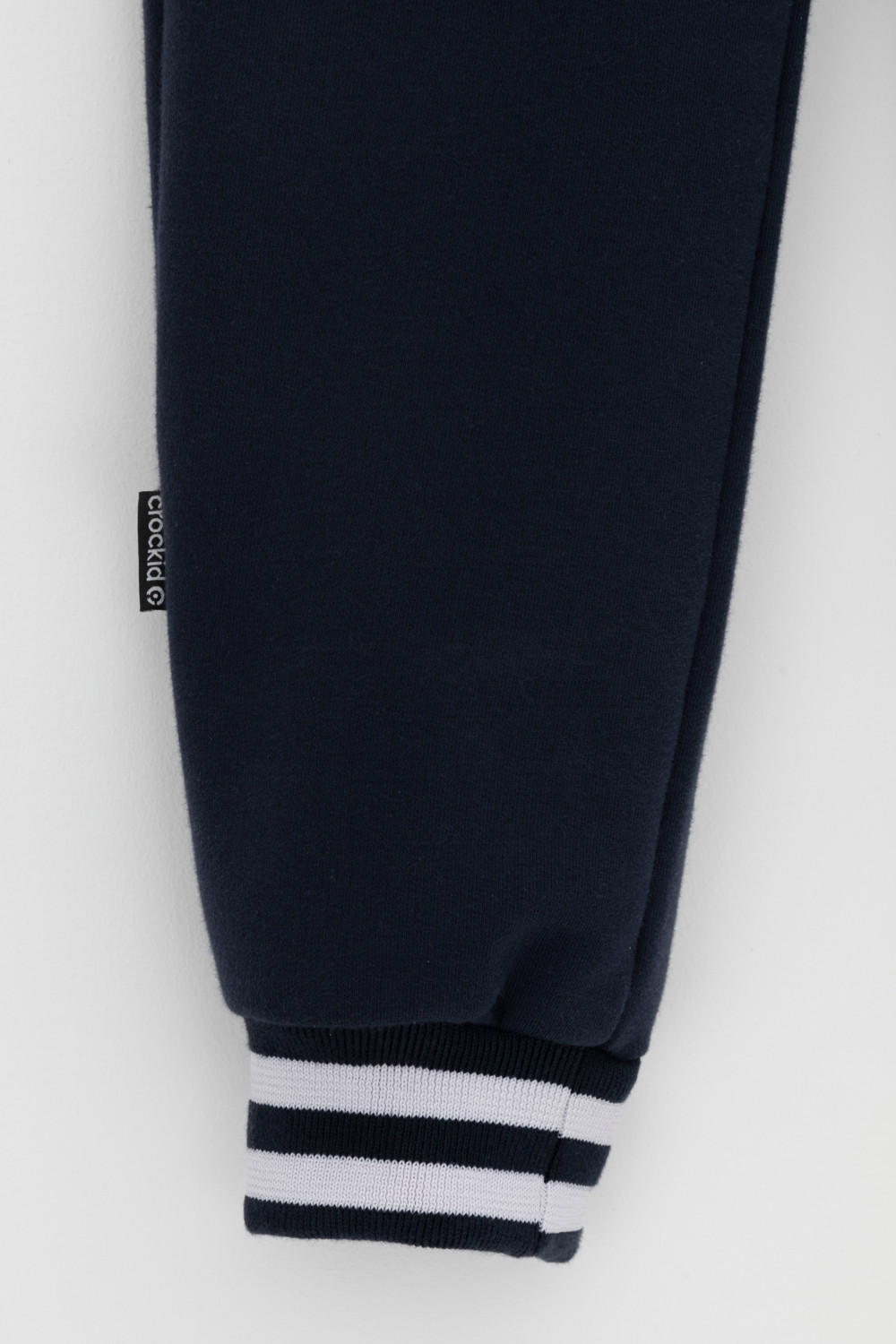 Объёмные брюки для мальчика из мягкого петельчатого трикотажа. В составе 80% натурального хлопка и 20% полиэстера, при этом полиэстер ввязан внутрь по особой технологии и не соприкасается с кожей. Эластичный пояс на резинке регулируется по ширине с помощью шнурка, по бокам два удобных кармана, внизу эластичные манжеты.