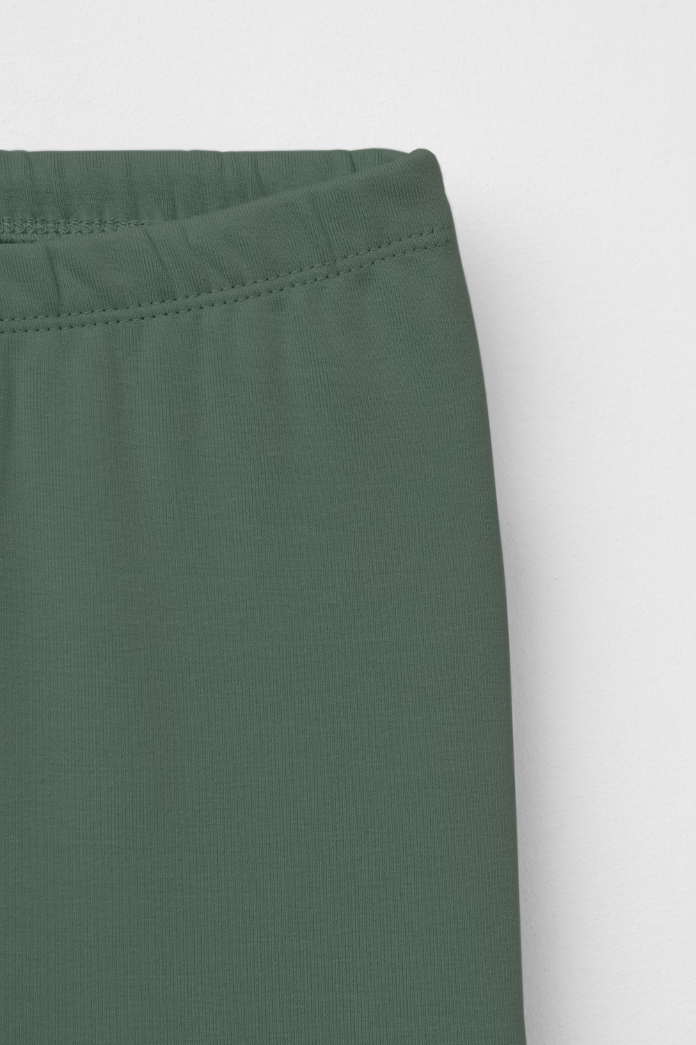 Тёплые однотонные бриджи. Сшиты из высококачественной эластичной рибаны с начёсом. Эластан в составе позволяет изделию быть более эластичным и дольше сохранять опрятный внешний вид. Удобный пояс на резинке. Низ обработан плоскими швами.