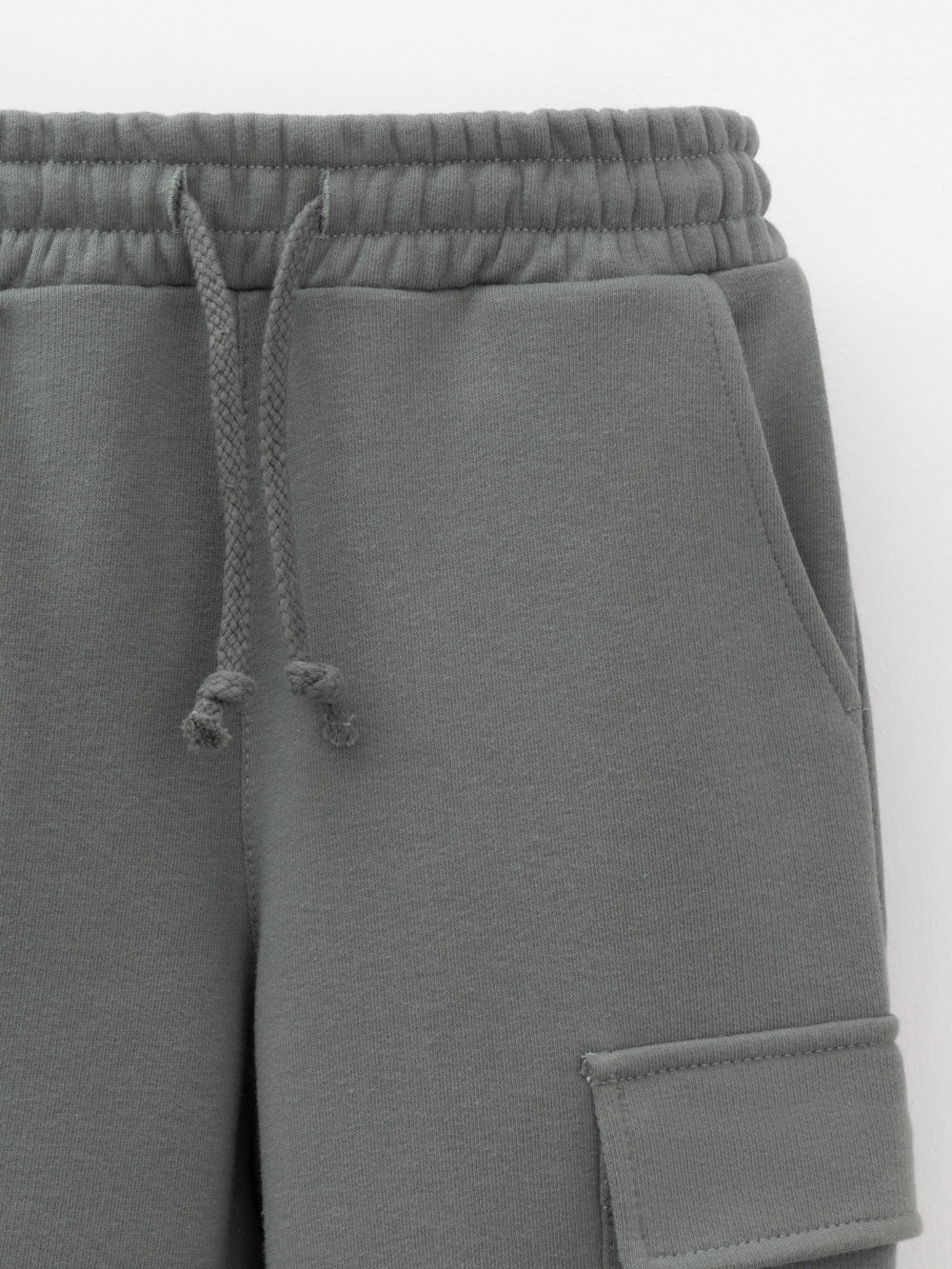 Брюки для мальчика из мягкого петельчатого футера трёхнитки. В составе 80% натурального хлопка и 20% полиэстера, при этом полиэстер ввязан внутрь по особой технологии и не соприкасается с кожей. Модель с эластичным поясом на резинке и утягивающим шнурком для регулировки по талии. По бокам четыре кармана. Низ на манжетах. Изделие сохраняет цвет и форму после многократных стирок. Все трикотажные полотна производятся в соответствии с нормами швейцарского сертификата ЭкоТекс.