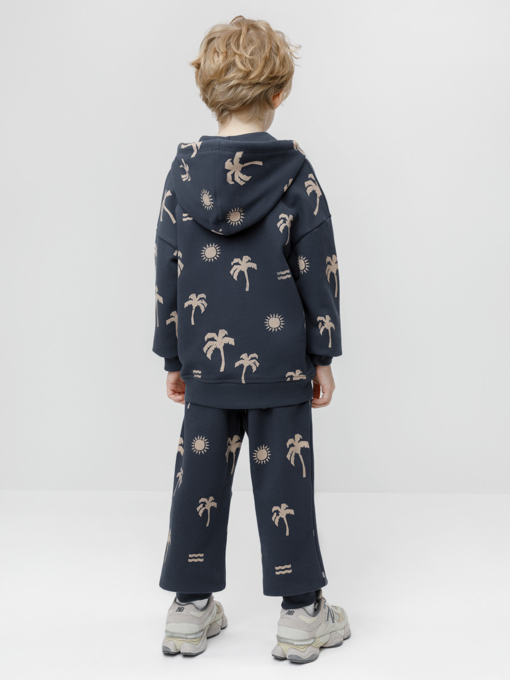Брюки для мальчика из высококачественного трикотажного полотна. Пояс регулируется по ширине при помощи шнурка. Низ на манжетах. Оригинальная набивка выполнена из стойких текстильных гипоаллергенных красителей. Изделие сохраняет цвет и форму после многократных стирок. Все трикотажные полотна производятся в соответствии с нормами швейцарского сертификата ЭкоТекс.