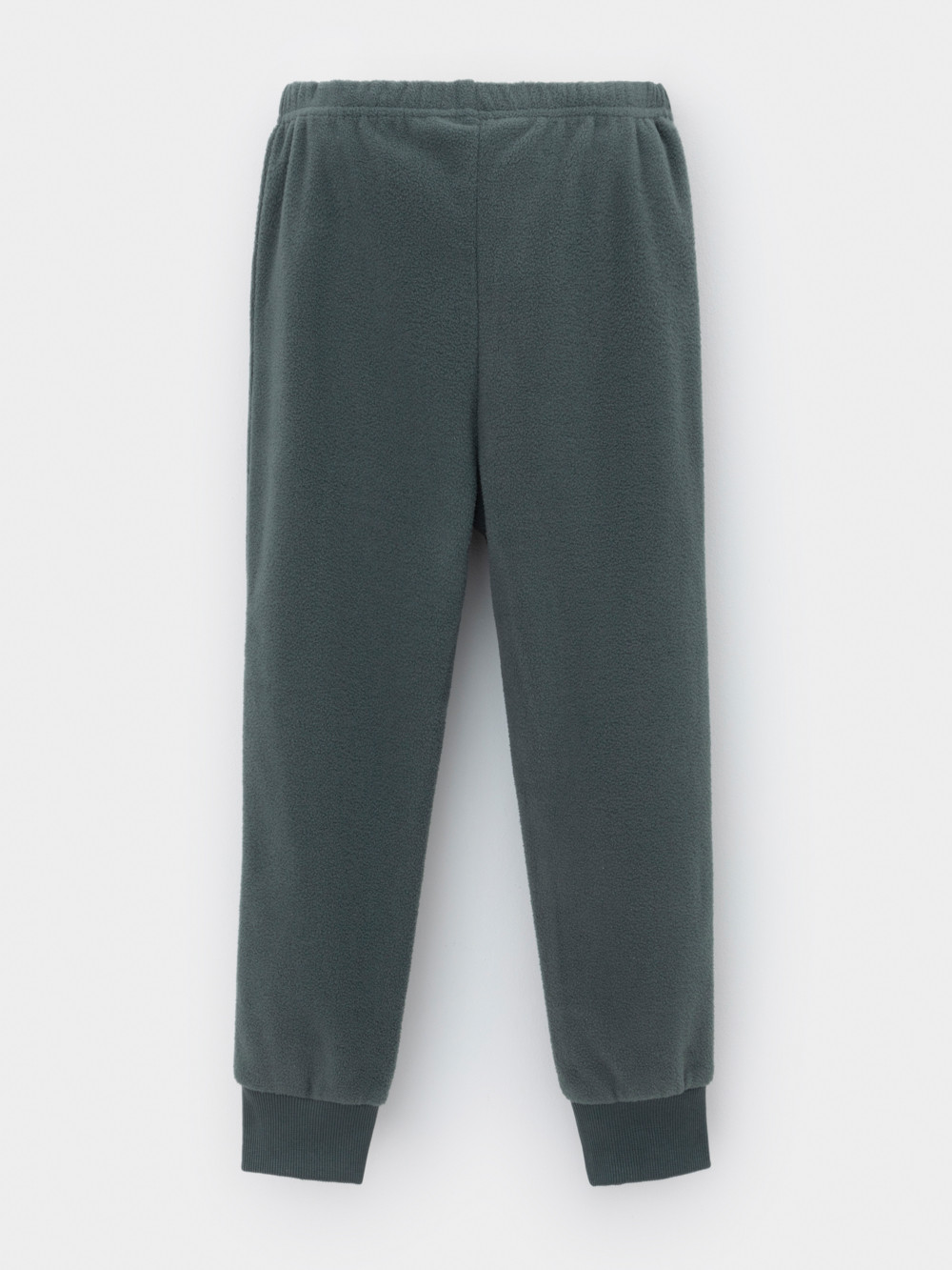 Однотонные детские брюки из флиса с поясом на резинке. Низ изделия на манжетах из эластичного трикотажа в рубчик. Брюки сохраняют цвет и форму после многократных стирок.