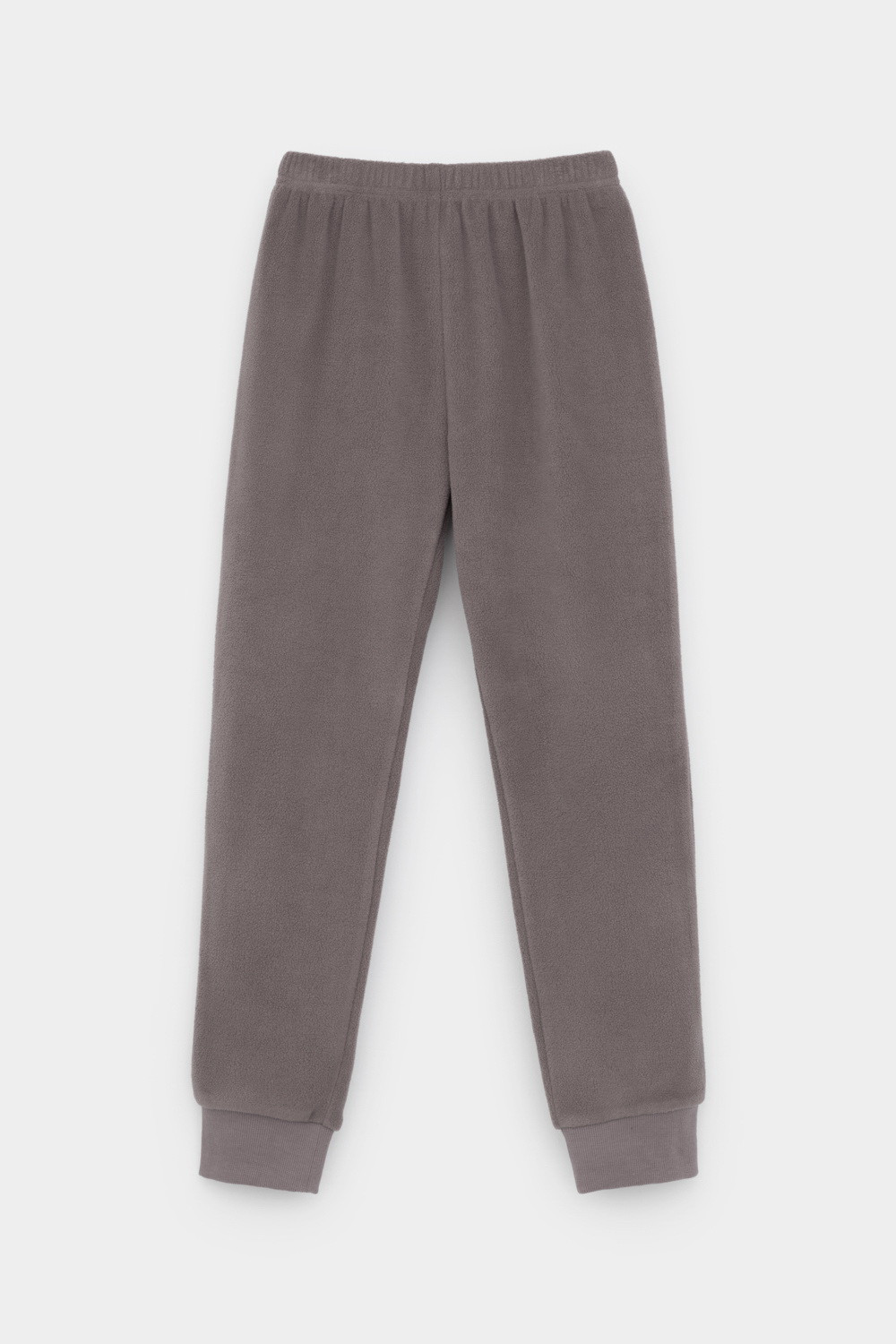Однотонные детские брюки из флиса с поясом на резинке. Низ изделия на манжетах из эластичного трикотажа в рубчик. Брюки сохраняют цвет и форму после многократных стирок.