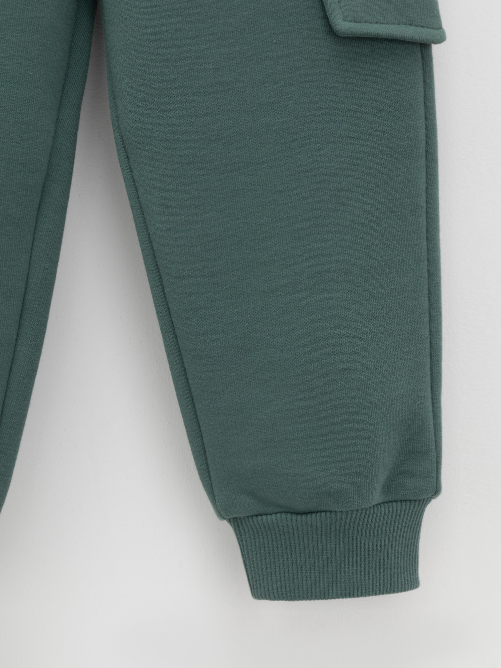 Брюки для мальчика из мягкого петельчатого футера трёхнитки. В составе 80% натурального хлопка и 20% полиэстера, при этом полиэстер ввязан внутрь по особой технологии и не соприкасается с кожей. Модель с эластичным поясом на резинке и утягивающим шнурком для регулировки по талии. По бокам два накладных клапана без карманов. Низ на манжетах. Изделие сохраняет цвет и форму после многократных стирок. Все трикотажные полотна производятся в соответствии с нормами швейцарского сертификата ЭкоТекс.