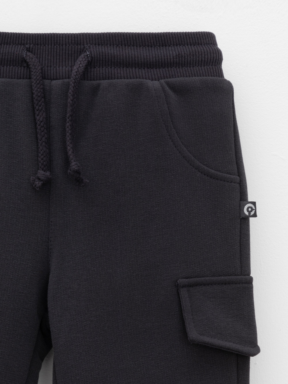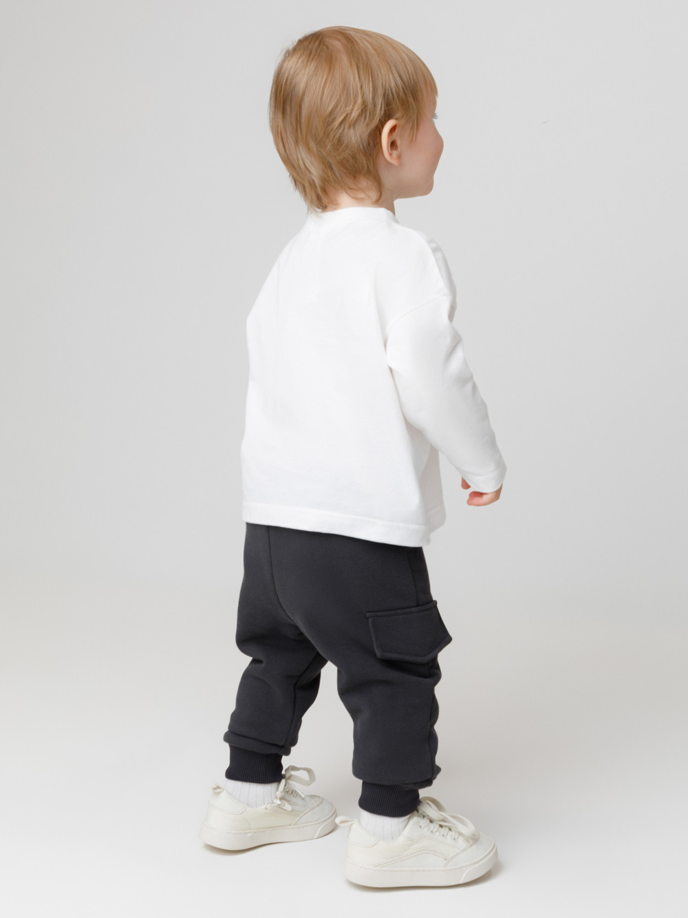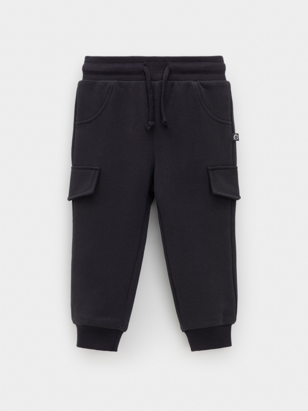 Брюки для мальчика из мягкого петельчатого футера трёхнитки. В составе 80% натурального хлопка и 20% полиэстера, при этом полиэстер ввязан внутрь по особой технологии и не соприкасается с кожей. Модель с эластичным поясом на резинке и утягивающим шнурком для регулировки по талии. По бокам два накладных клапана без карманов. Низ на манжетах. Изделие сохраняет цвет и форму после многократных стирок. Все трикотажные полотна производятся в соответствии с нормами швейцарского сертификата ЭкоТекс.