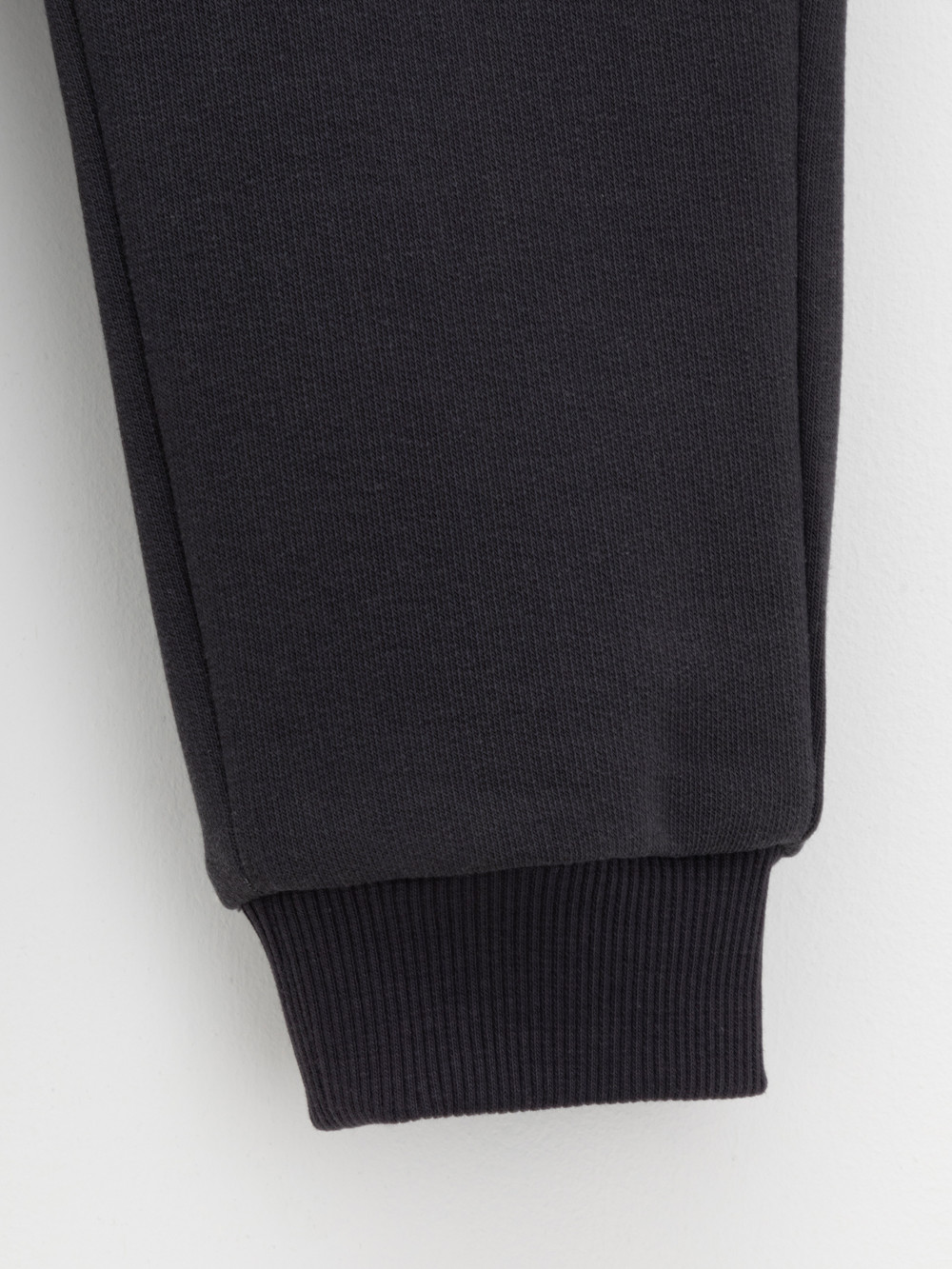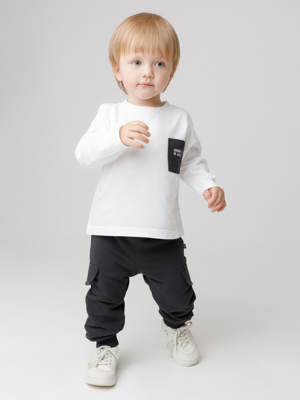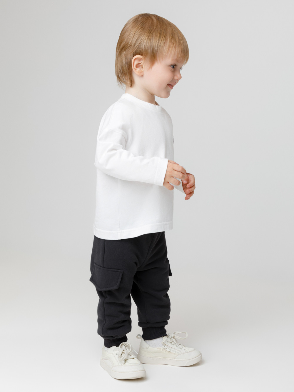 Брюки для мальчика из мягкого петельчатого футера трёхнитки. В составе 80% натурального хлопка и 20% полиэстера, при этом полиэстер ввязан внутрь по особой технологии и не соприкасается с кожей. Модель с эластичным поясом на резинке и утягивающим шнурком для регулировки по талии. По бокам два накладных клапана без карманов. Низ на манжетах. Изделие сохраняет цвет и форму после многократных стирок. Все трикотажные полотна производятся в соответствии с нормами швейцарского сертификата ЭкоТекс.