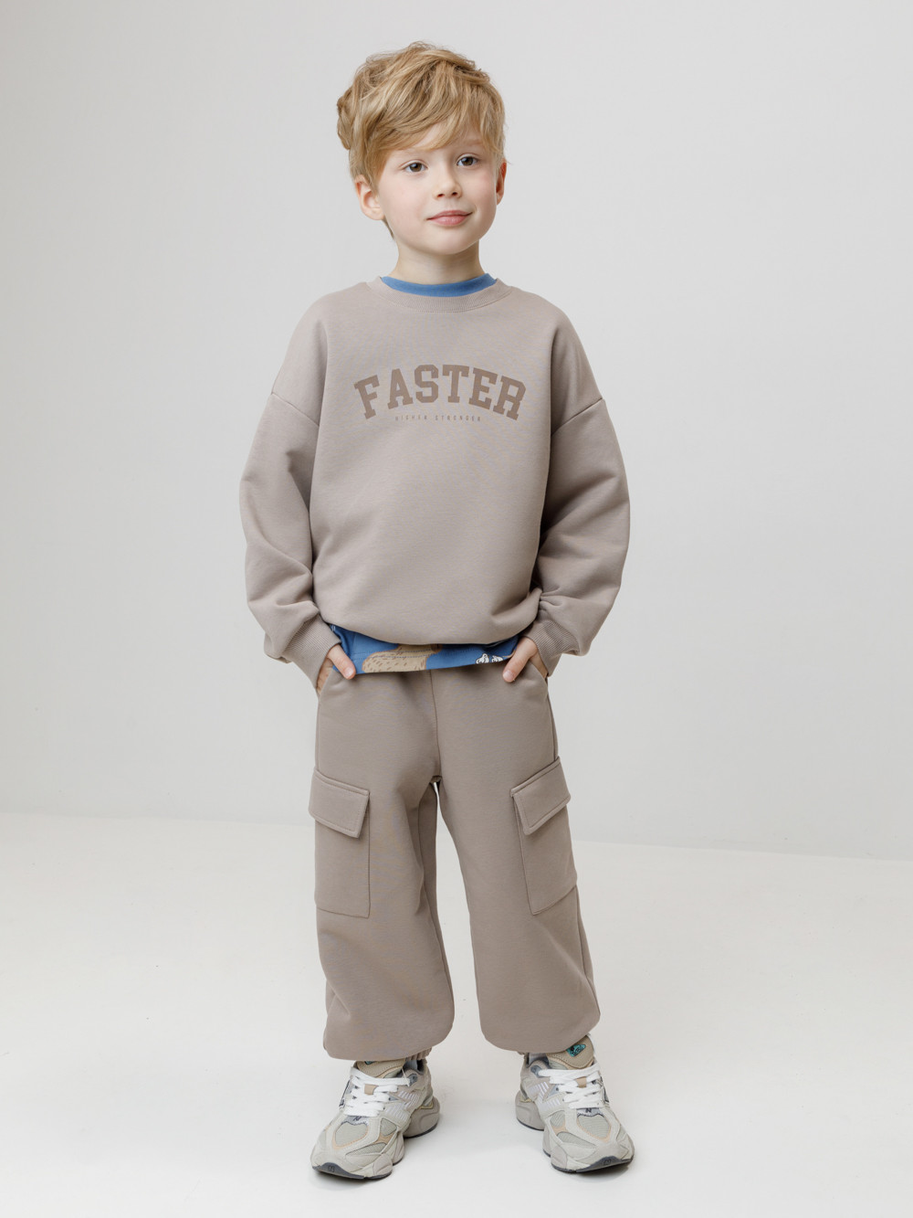 Брюки для мальчика из высококачественного трикотажного полотна. В составе 80% натурального хлопка и 20% полиэстера, при этом полиэстер ввязан внутрь по особой технологии и не соприкасается с кожей. Пояс регулируется по ширине при помощи шнурка. Низ на манжетах. Изделие сохраняет цвет и форму после многократных стирок. Все трикотажные полотна производятся в соответствии с нормами швейцарского сертификата ЭкоТекс.