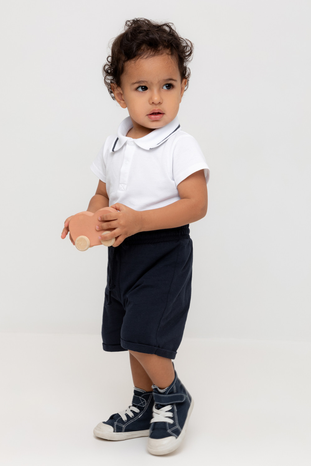 Легкие трикотажные шорты для мальчика из высококачественного хлопка. Эластичный пояс регулируется при помощи шнурка.