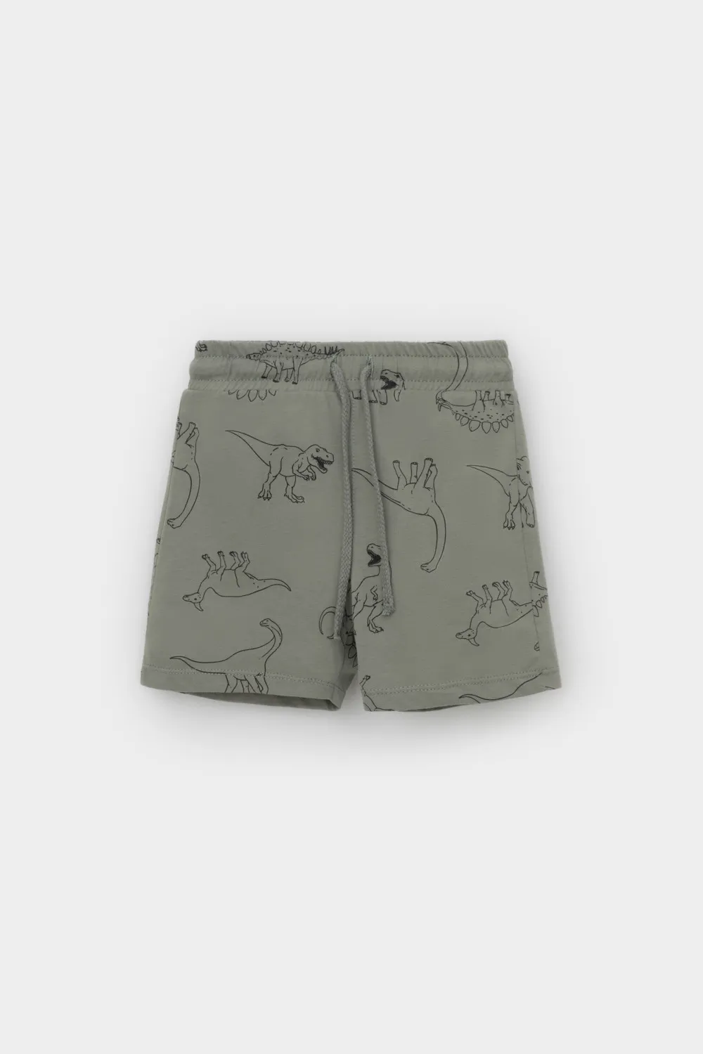 Легкие трикотажные шорты для мальчика из высококачественного хлопка. Эластичный пояс регулируется при помощи шнурка.