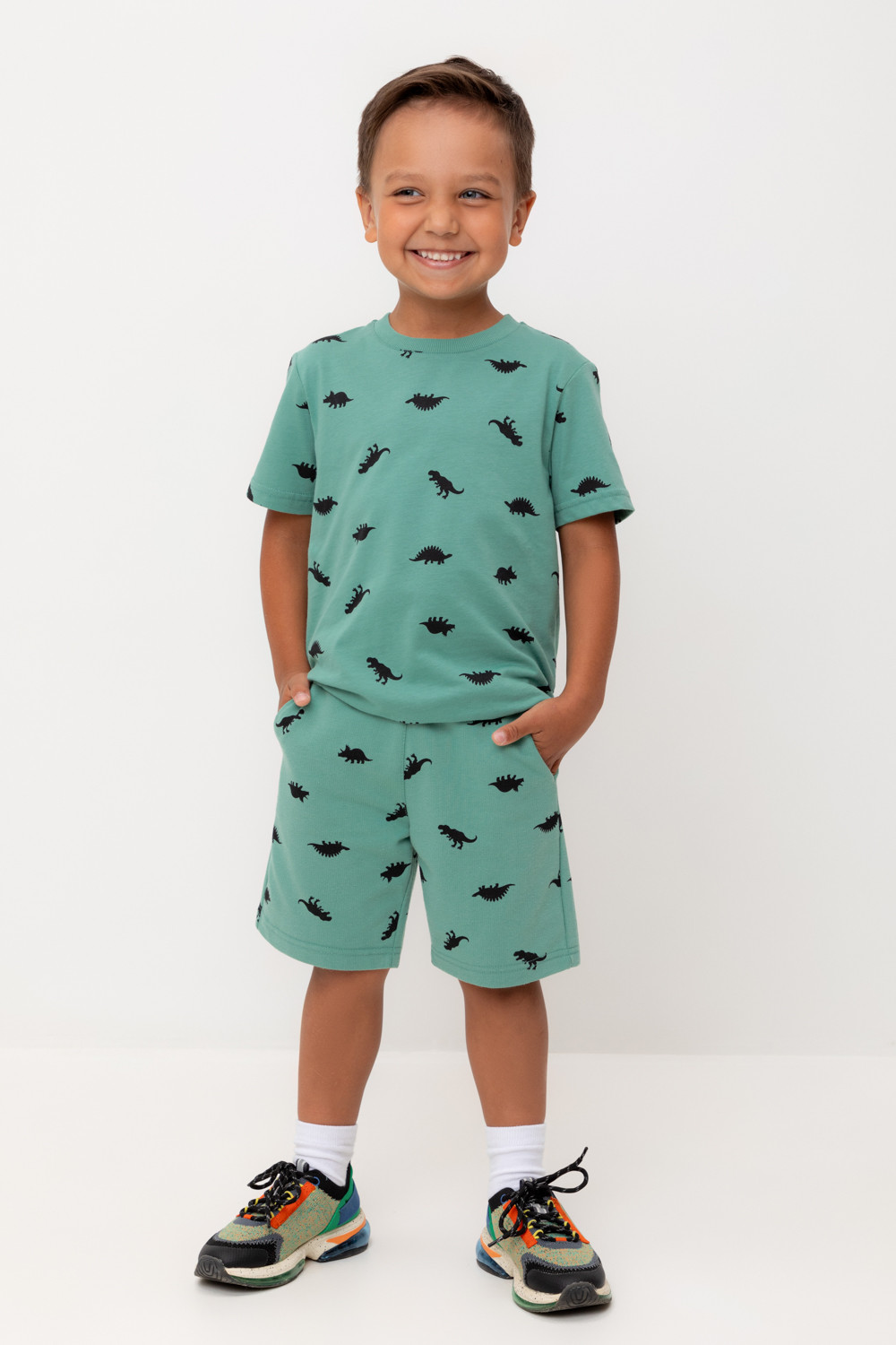 Трикотажные шорты для мальчика из высококачественного хлопкового трикотажа футер петля. Эластичный пояс на резинке регулируется по ширине с помощью шнура. По бокам два удобных  кармана.