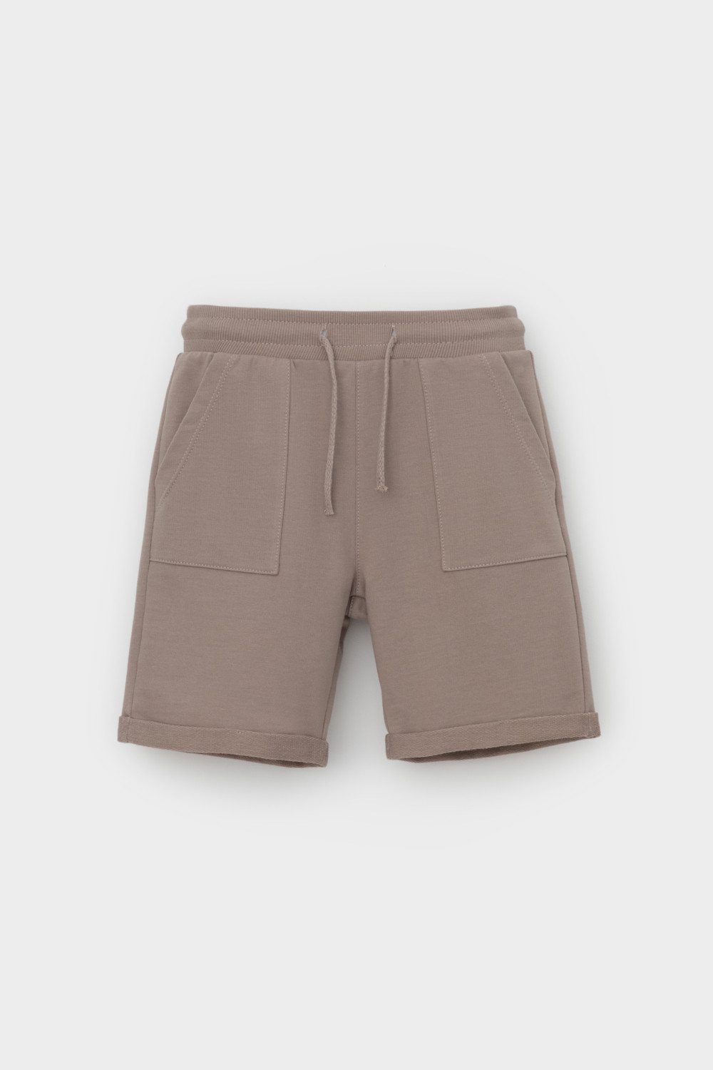 Трикотажные шорты для мальчика из петельчатого футера. Эластичный пояс на резинке регулируется по ширине с помощью шнура, по бокам два удобных накладных кармана.