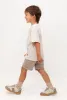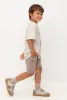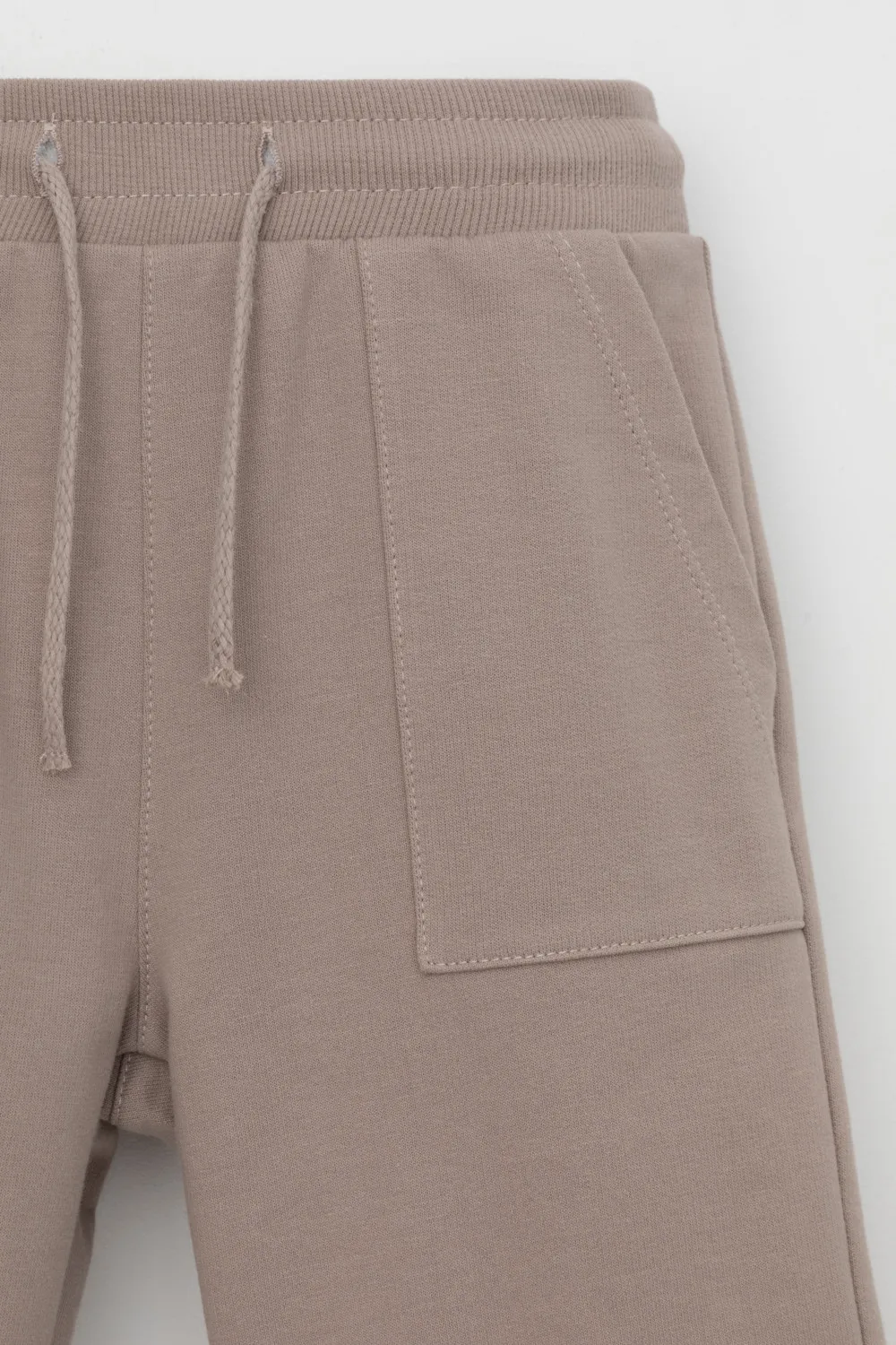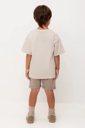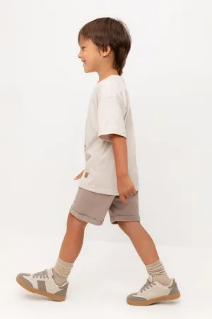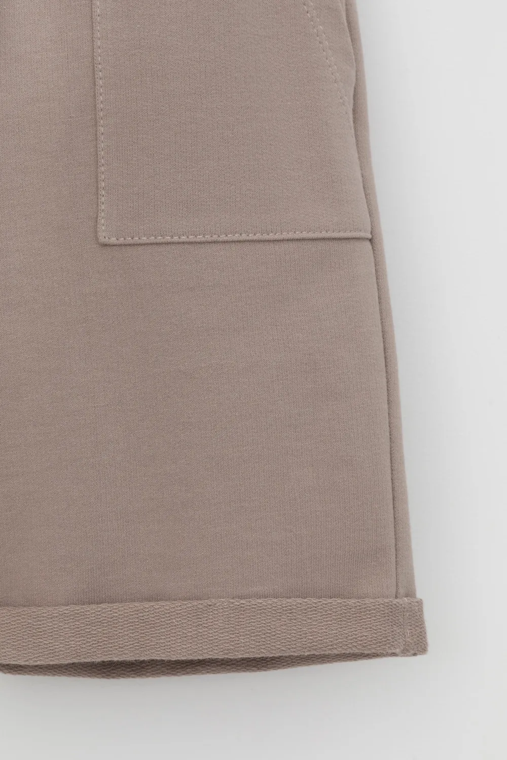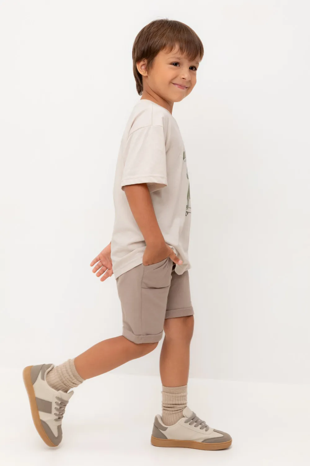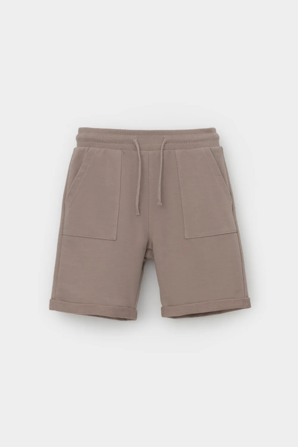 Трикотажные шорты для мальчика из петельчатого футера. Эластичный пояс на резинке регулируется по ширине с помощью шнура, по бокам два удобных накладных кармана.
