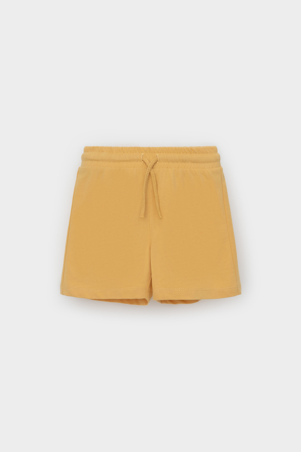 Легкие трикотажные шорты для мальчика из высококачественного хлопка. Эластичный пояс регулируется при помощи шнурка.