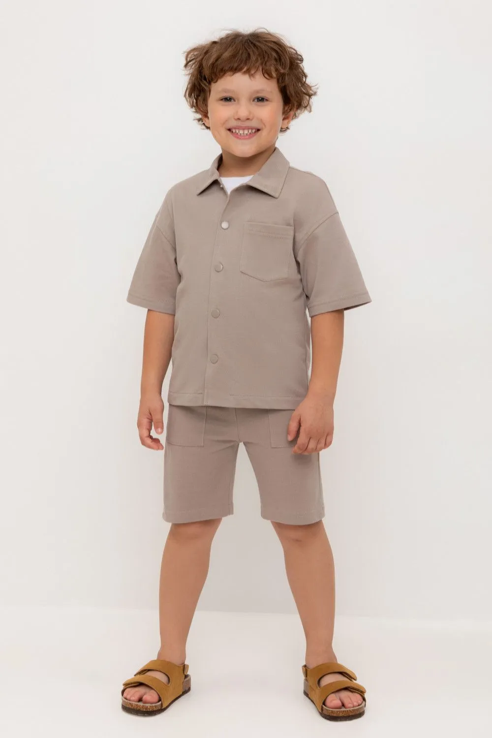 Трикотажные шорты для мальчика из высококачественного хлопкового трикотажа пике. Эластичный пояс на резинке регулируется по ширине с помощью шнура. По бокам два удобных  кармана.
