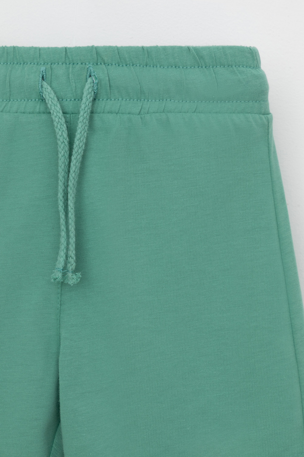 Легкие трикотажные шорты для мальчика из высококачественного хлопка. Эластичный пояс регулируется при помощи шнурка.
