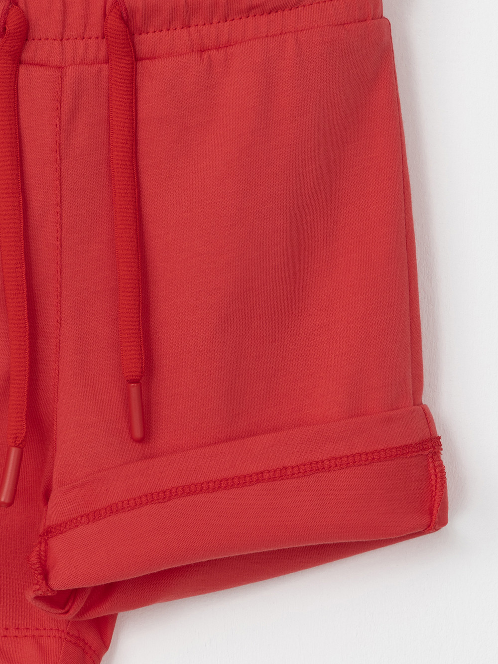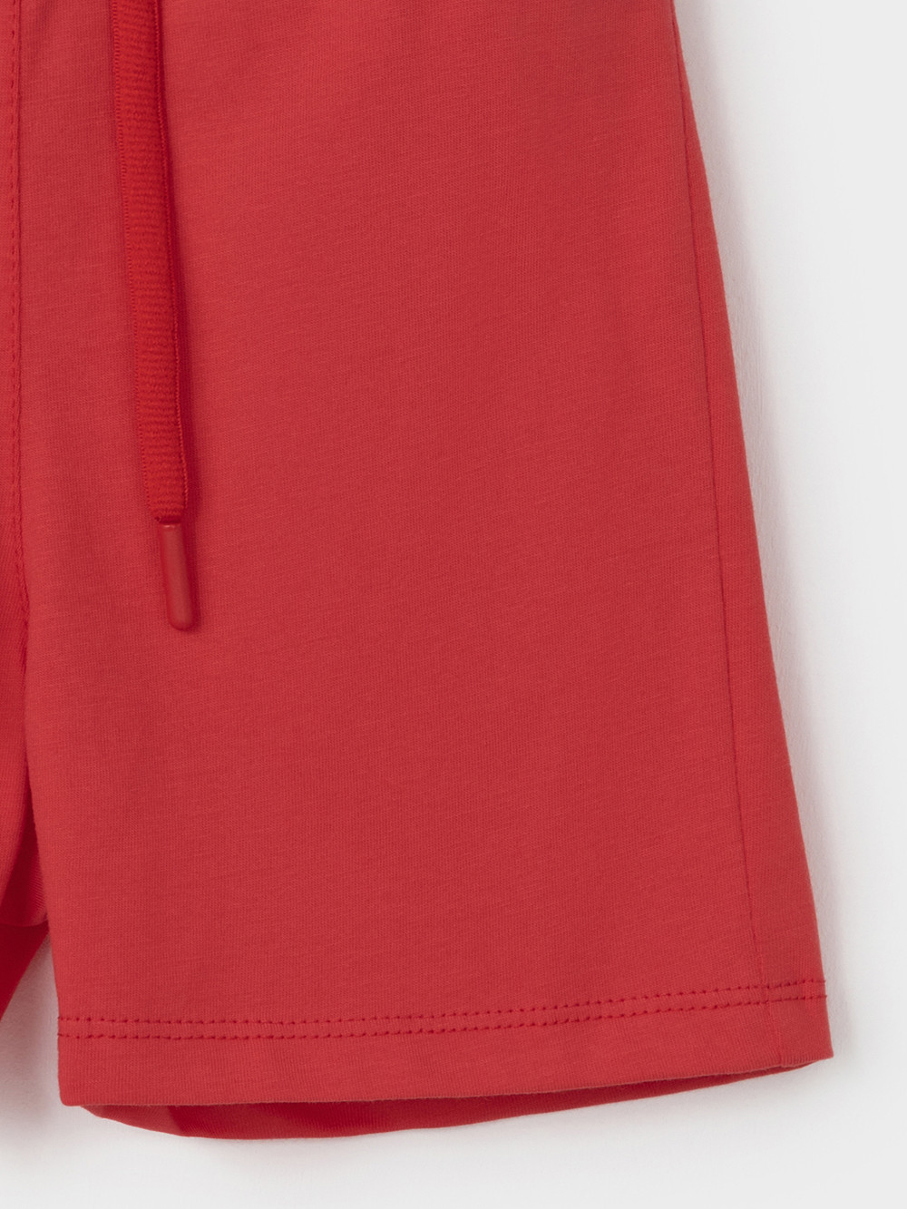 Лёгкие шорты для мальчика из гладкого трикотажа супрем. Эластичный пояс на резинке регулируется по ширине с помощью шнура. Изделие сохраняет цвет и форму после многократных стирок. Все трикотажные полотна производятся в соответствии с нормами швейцарского сертификата ЭкоТекс.