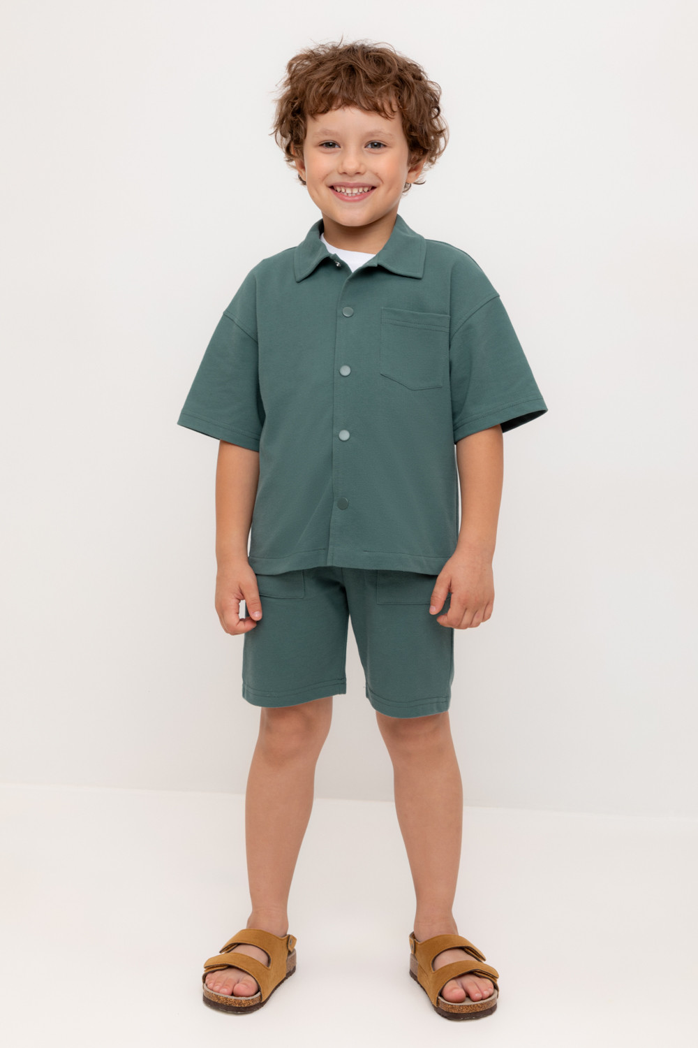 Трикотажные шорты для мальчика из высококачественного хлопкового трикотажа пике. Эластичный пояс на резинке регулируется по ширине с помощью шнура. По бокам два удобных  кармана.