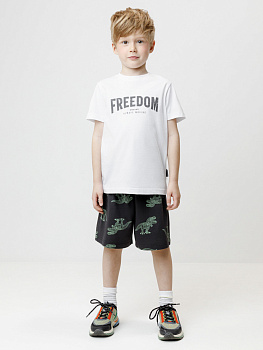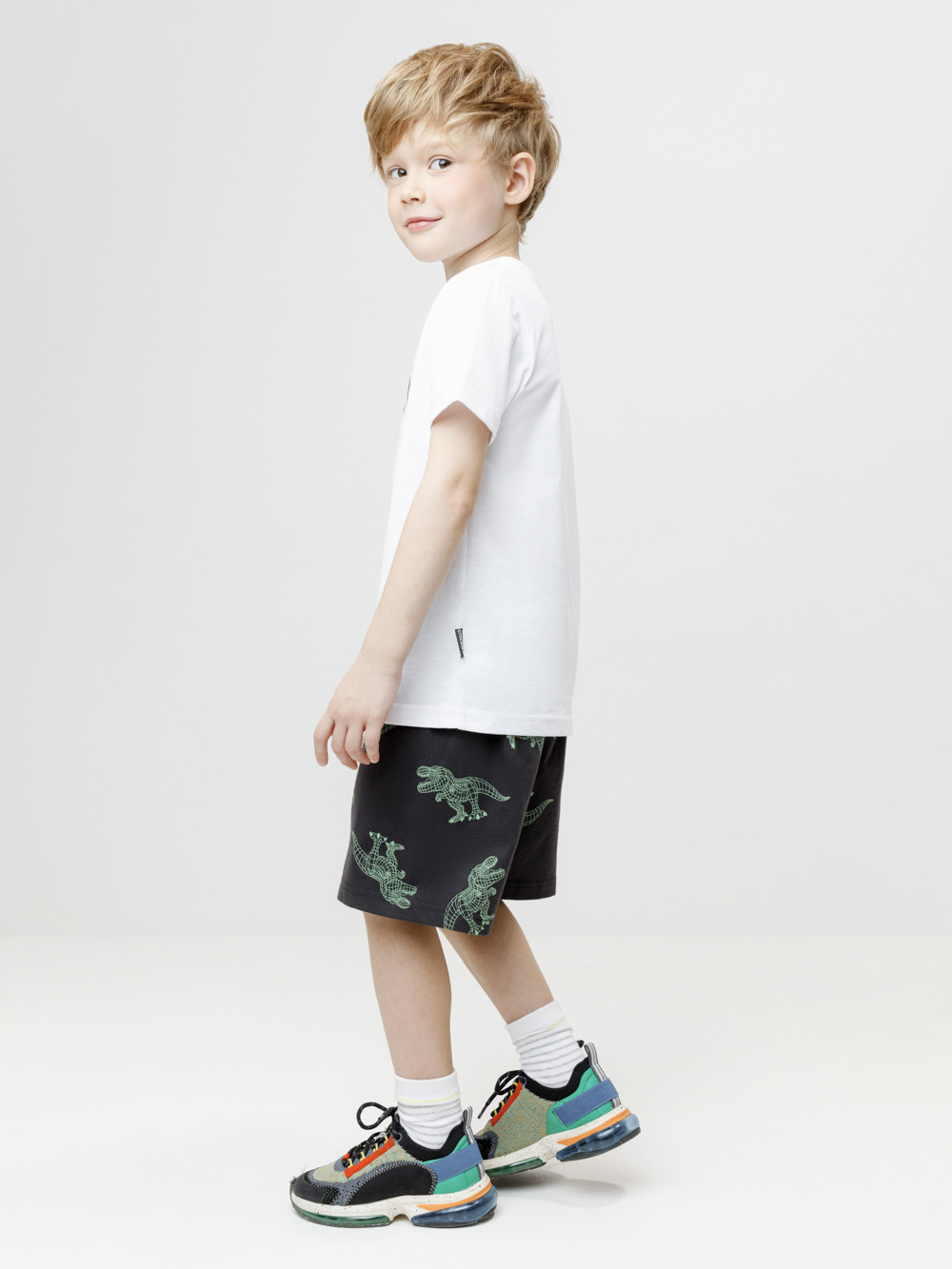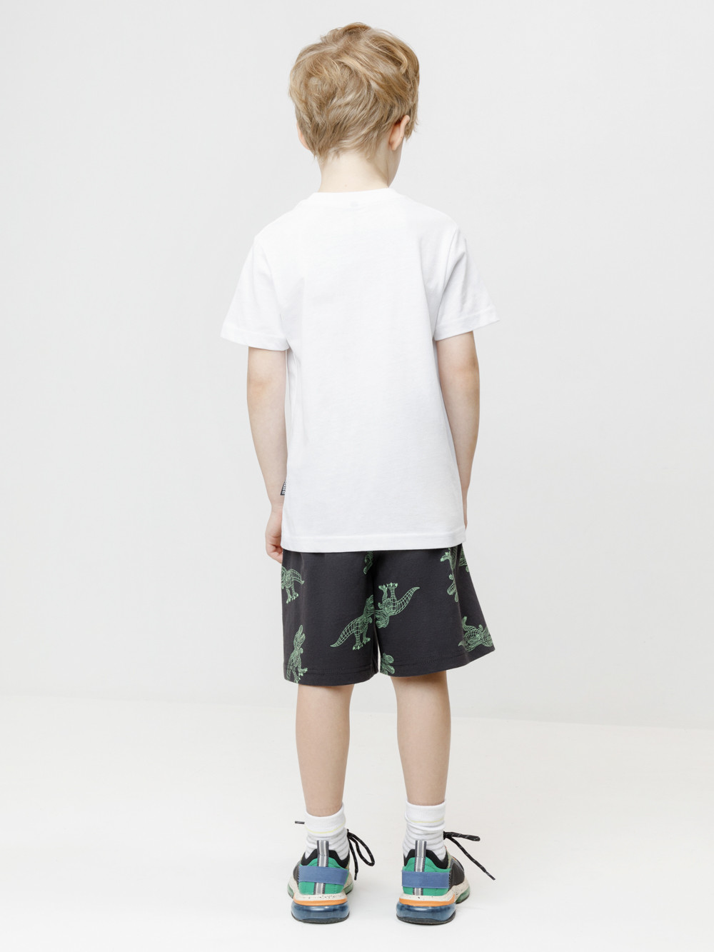 Лёгкие шорты для мальчика из гладкого трикотажа супрем. Эластичный пояс на резинке регулируется по ширине с помощью шнурка. Изделие сохраняет цвет и форму после многократных стирок. Все трикотажные полотна производятся в соответствии с нормами швейцарского сертификата ЭкоТекс.