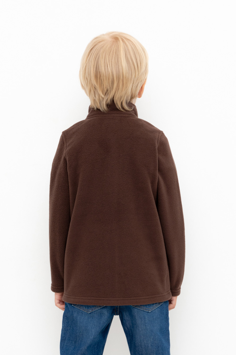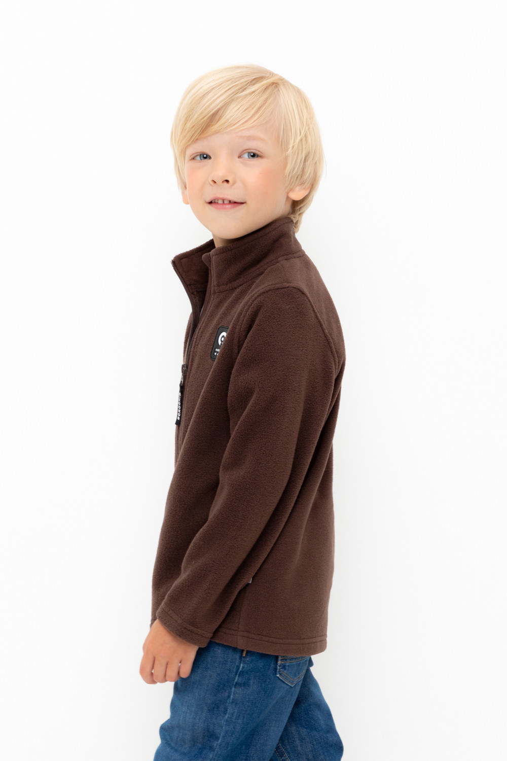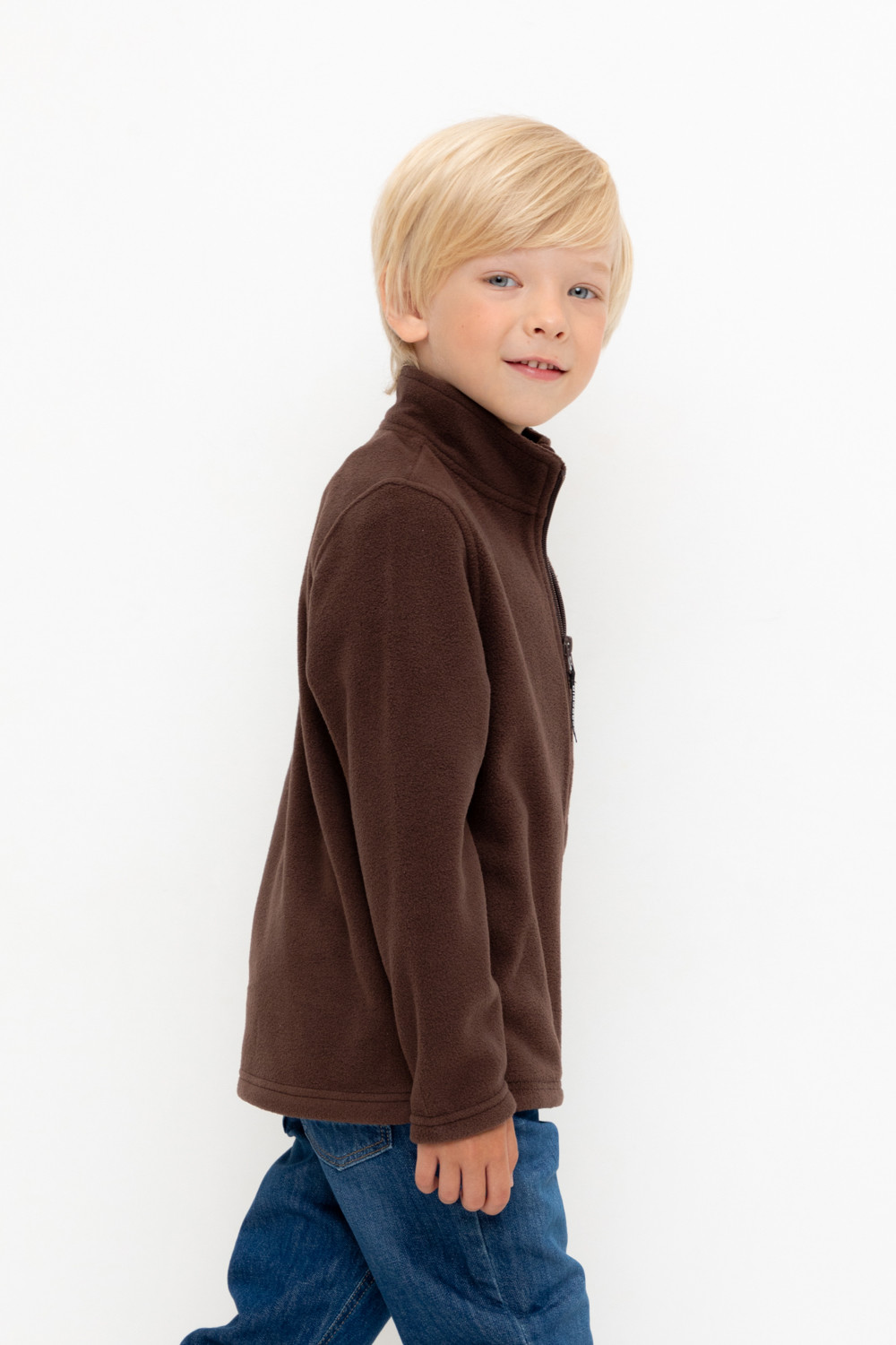 Флисовая куртка для мальчика. У изделия высокий воротник, предусмотрена защита шеи и подбородка, по бокам карманы. Куртка сохраняет цвет и форму после многократных стирок.