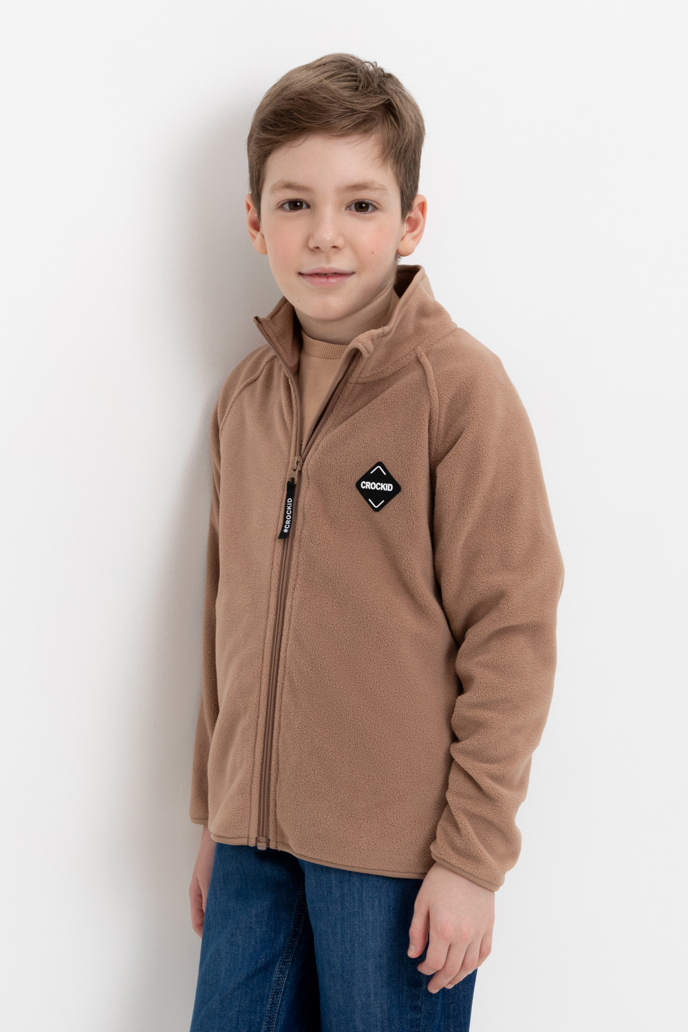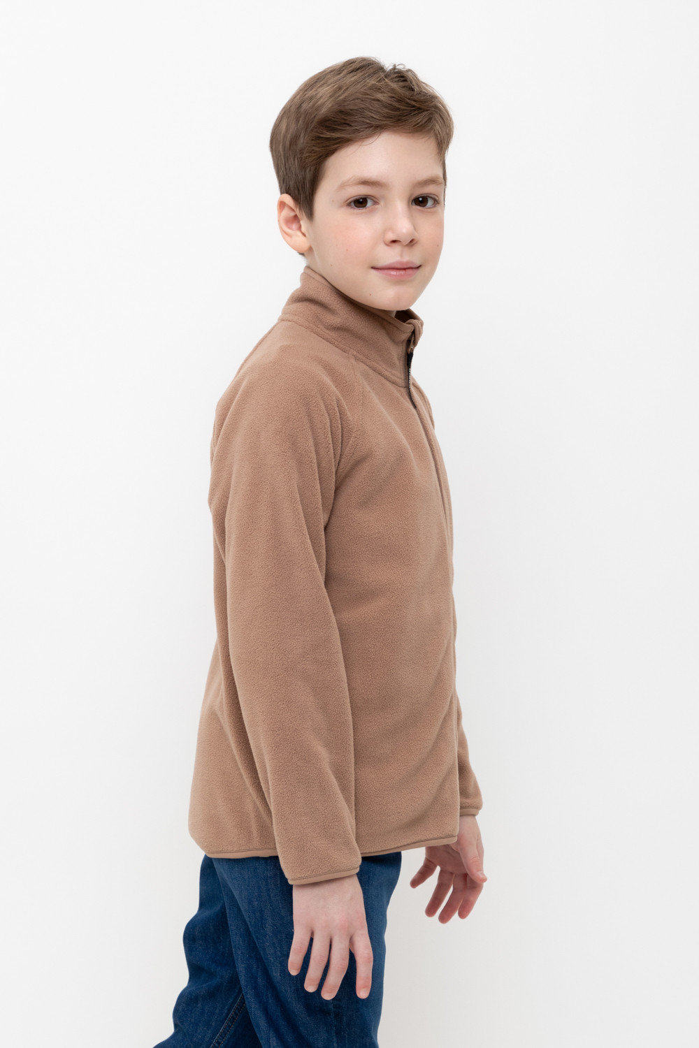 Флисовая куртка для мальчика. У изделия удлинённая спинка, высокий воротник, предусмотрена защита шеи и подбородка. Рукава-реглан и низ изделия обработаны эластичным кантом для лучшего прилегания к телу, по бокам два кармана. Куртка сохраняет цвет и форму после многократных стирок.