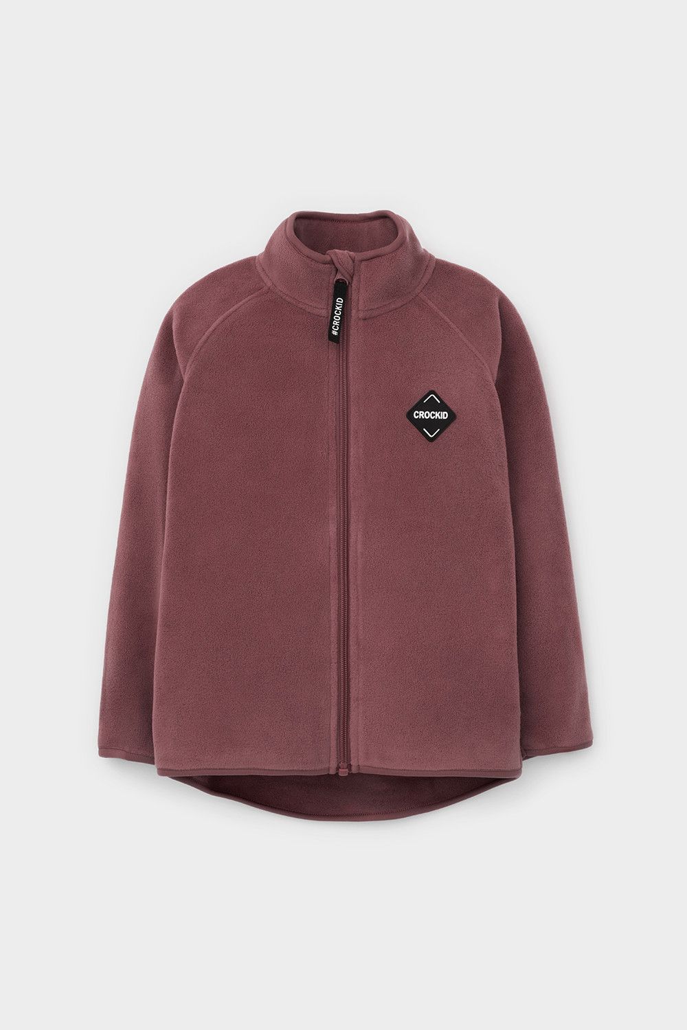 Флисовая куртка для мальчика. У изделия удлинённая спинка, высокий воротник, предусмотрена защита шеи и подбородка. Рукава-реглан и низ изделия обработаны эластичным кантом для лучшего прилегания к телу, по бокам два кармана. Куртка сохраняет цвет и форму после многократных стирок.