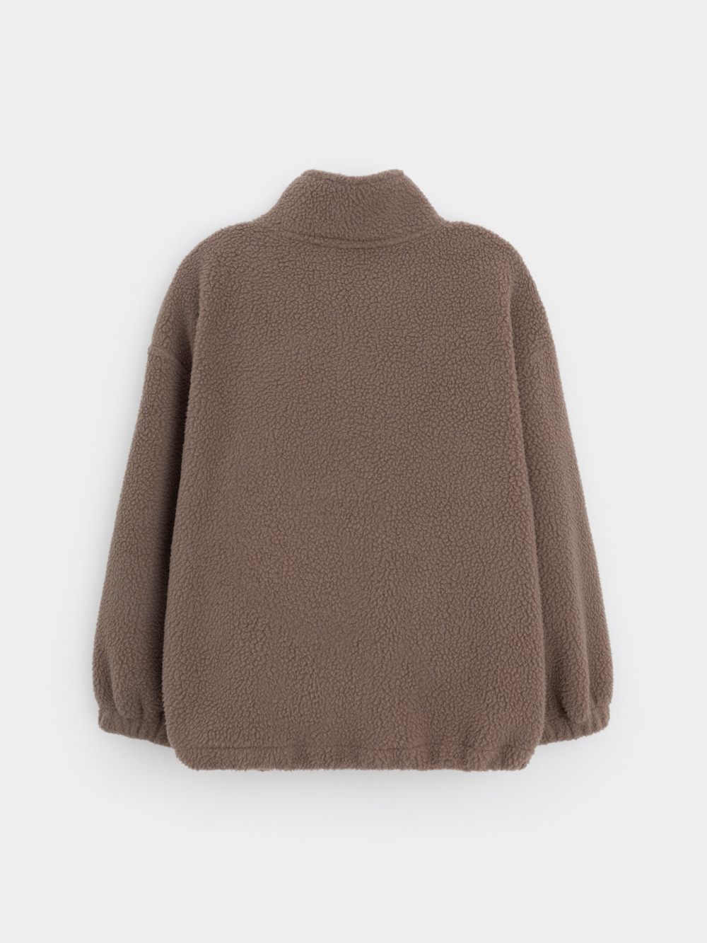 Флисовая куртка детская. У изделия высокий воротник и застёжка на молнию с мягкой защитой шеи и подбородка. По бокам два кармана. Рукава собраны на резинку. Низ изделия регулируется по ширине с помощью эластичной утяжки со стопперами. Куртка сохраняет цвет и форму после многократных стирок.