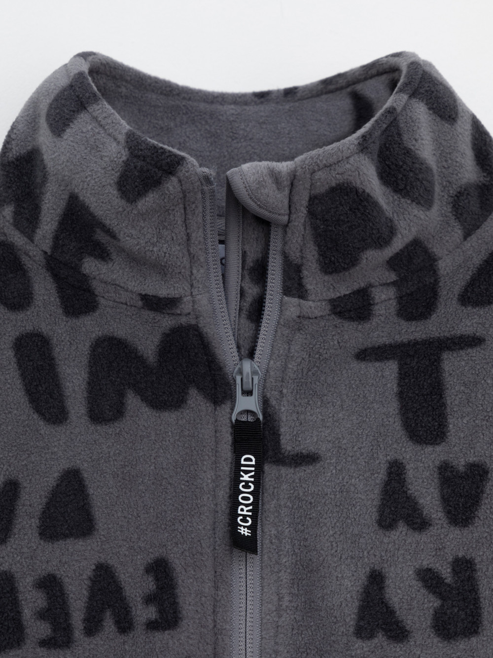 Флисовая куртка для мальчика. У изделия высокий воротник и застёжка на молнию с мягкой защитой шеи и подбородка. По бокам два кармана. Рукава собраны на резинку. Низ изделия регулируется по ширине с помощью эластичной утяжки со стопперами. Куртка сохраняет цвет и форму после многократных стирок.