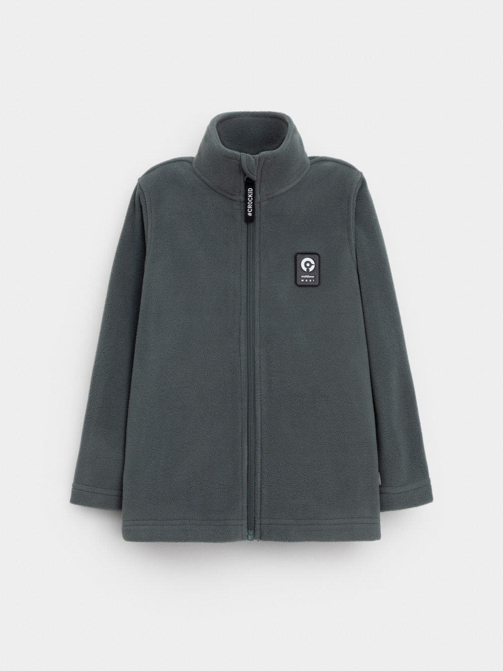 Флисовая куртка для мальчика. У изделия высокий воротник и застёжка на молнию с мягкой защитой шеи и подбородка. По бокам два кармана. Куртка сохраняет цвет и форму после многократных стирок.