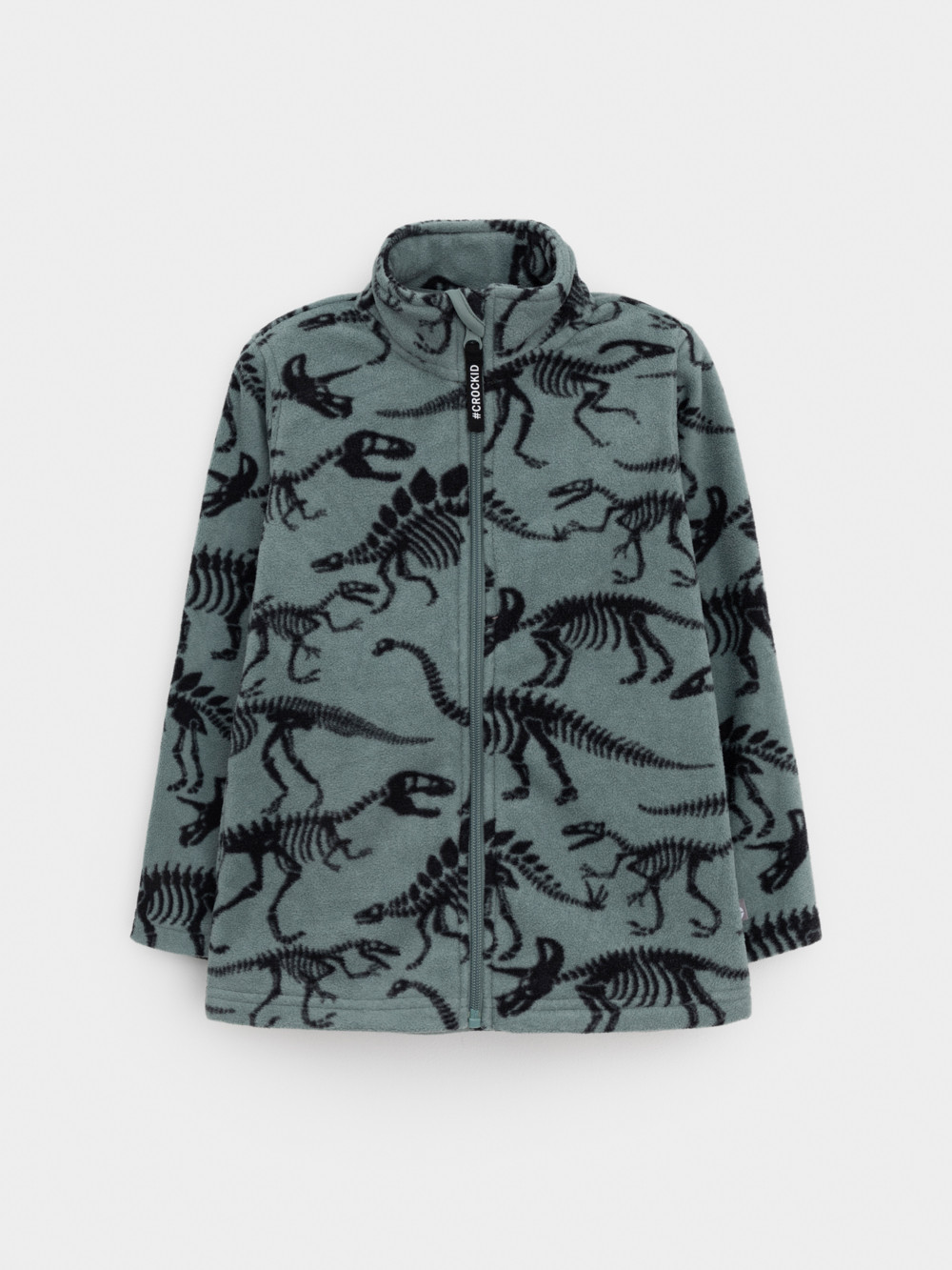 Флисовая куртка для мальчика. У изделия высокий воротник и застёжка на молнию с мягкой защитой шеи и подбородка. По бокам два кармана. Оригинальная набивка выполнена из стойких гипоаллергенных текстильных красителей. Куртка сохраняет цвет и форму после многократных стирок.