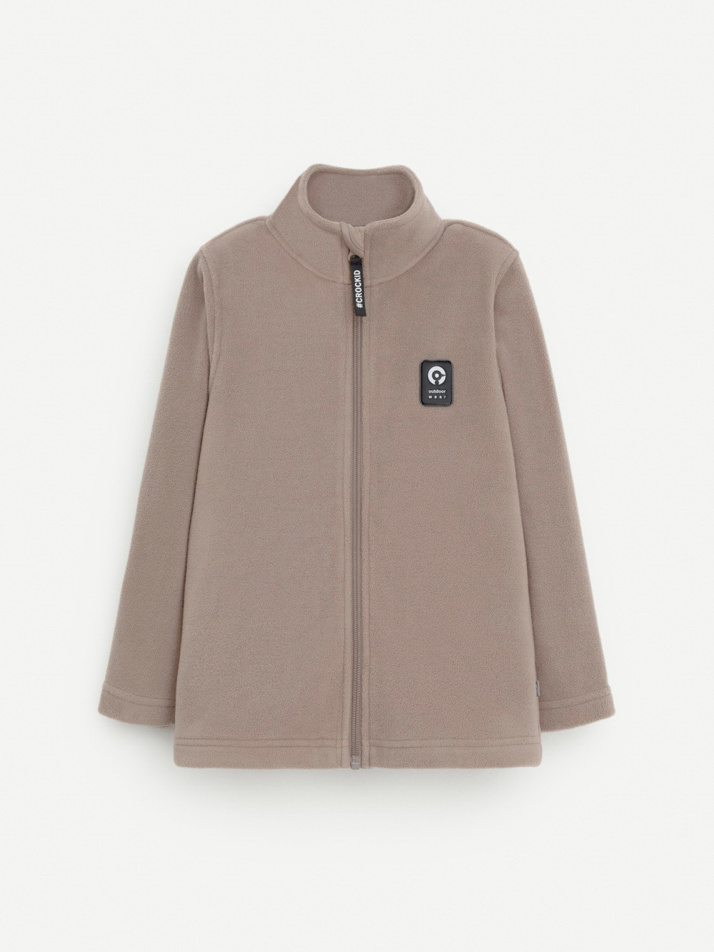 Флисовая куртка для мальчика. У изделия высокий воротник и застёжка на молнию с мягкой защитой шеи и подбородка. По бокам два кармана. Спереди украшена фирменной нашивкой. Куртка сохраняет цвет и форму после многократных стирок.