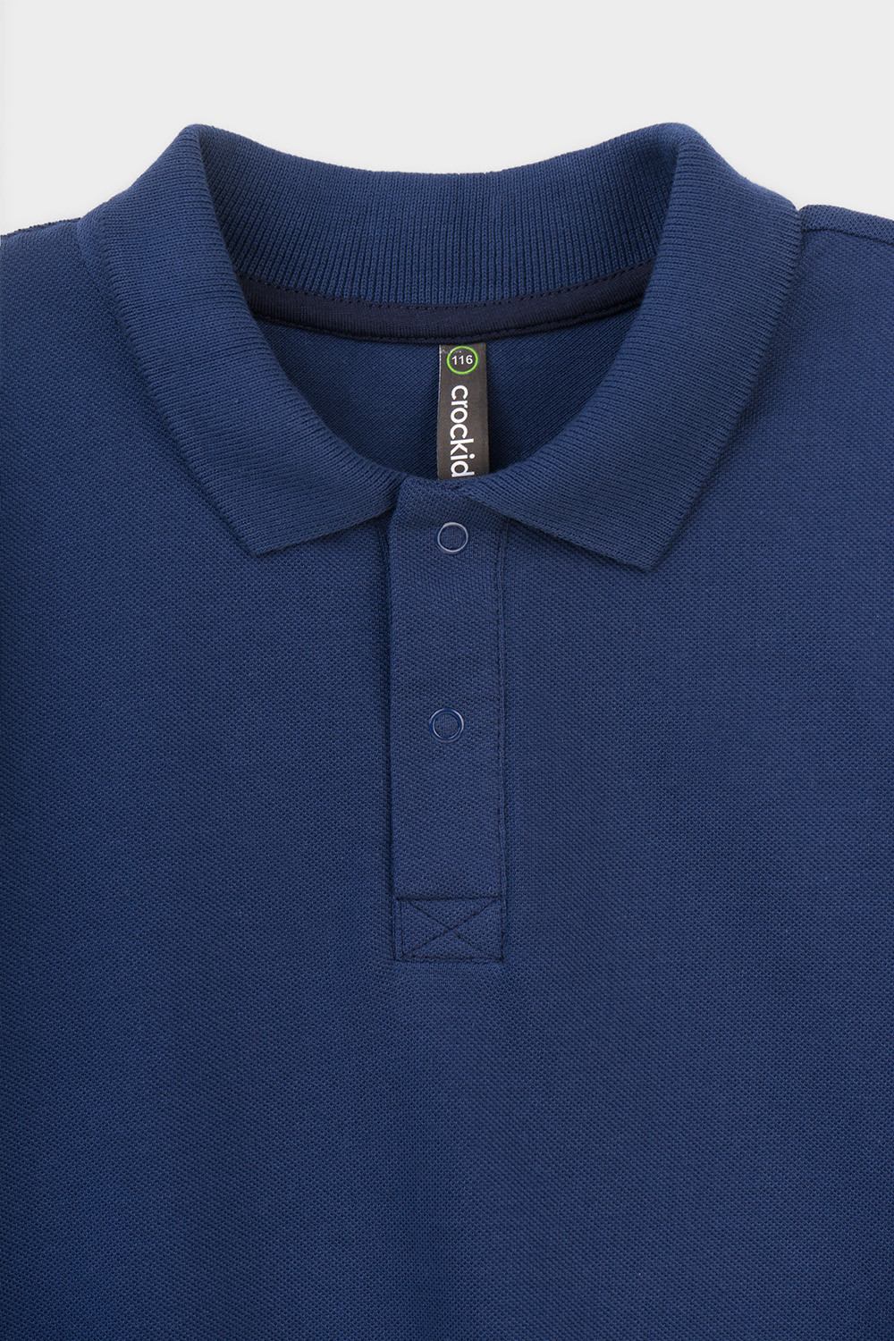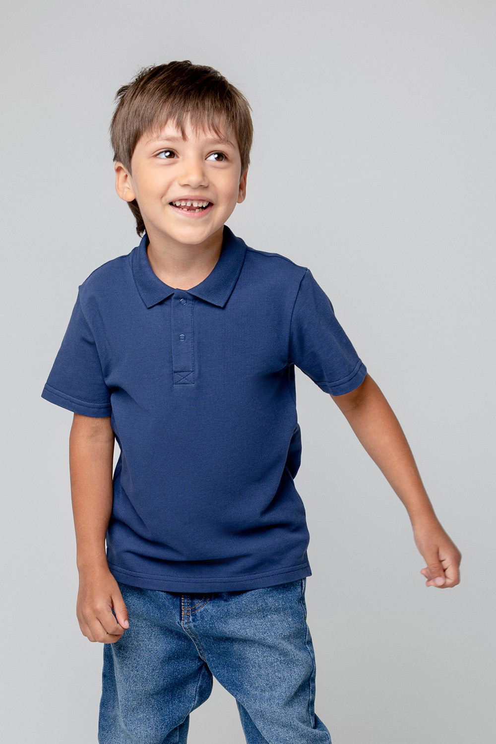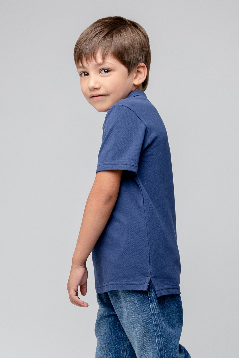 Джемпер поло с короткими рукавами для мальчика из трикотажного  полотна пике. Вязаный воротник. Удобная застежка спереди. По бокам разрезы, обработанные киперной лентой.