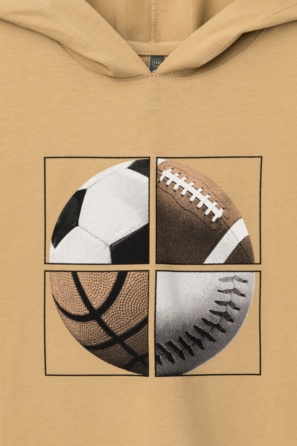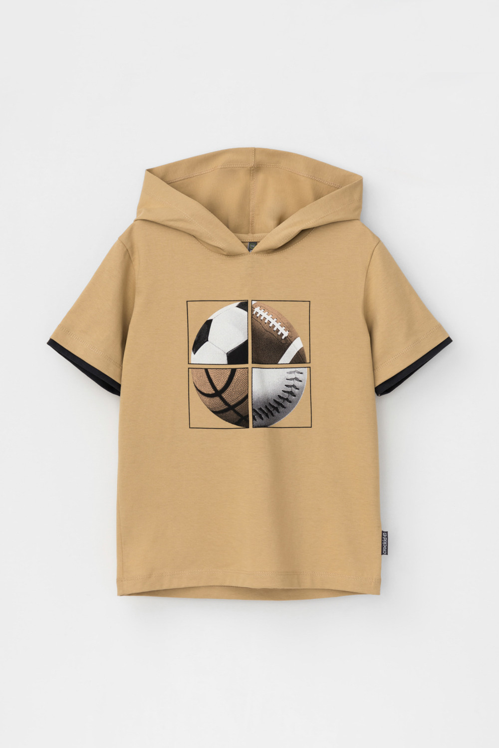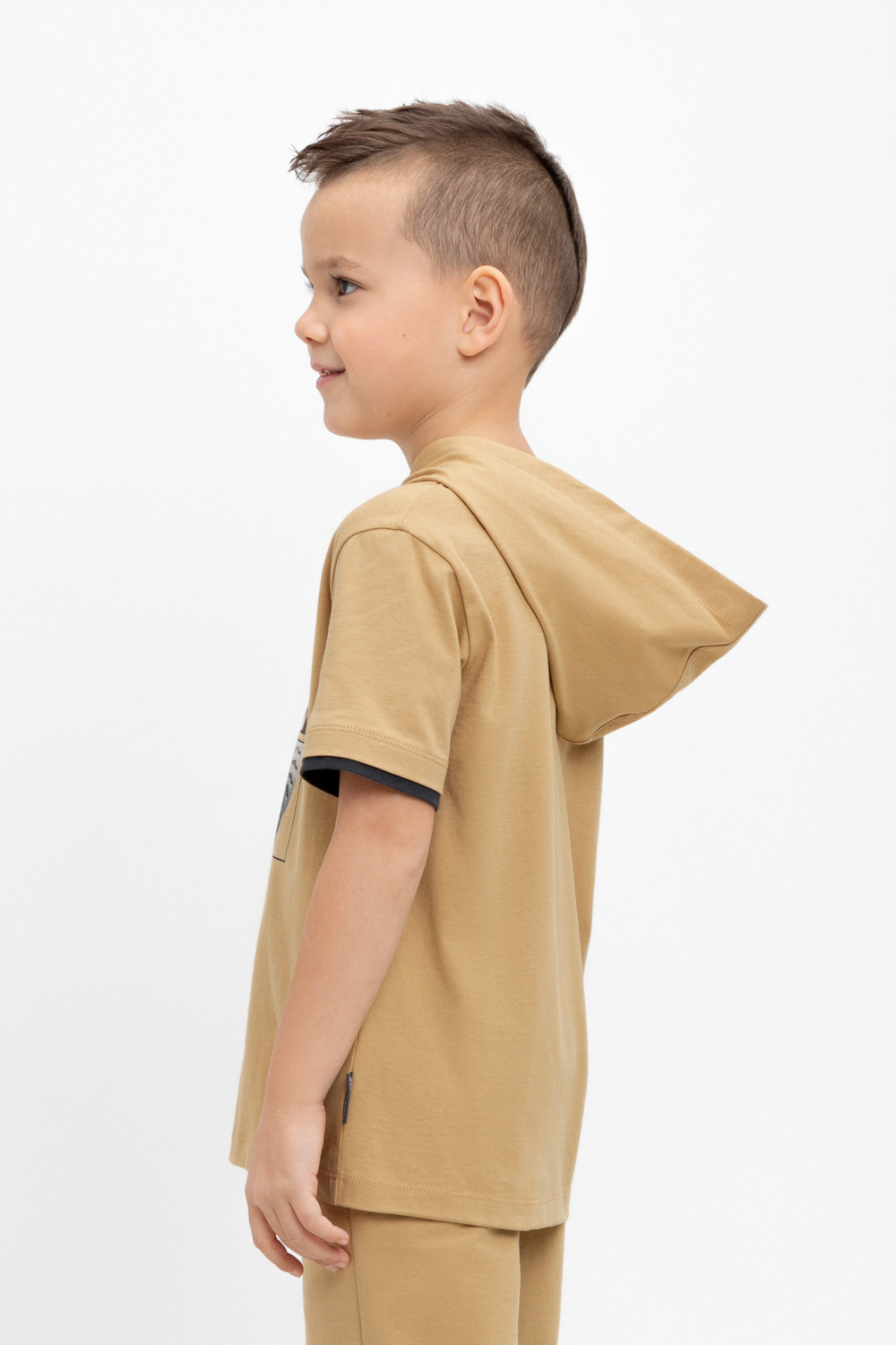 Футболка с капюшоном для мальчика из высококачественного трикотажного полотна. Оригинальный принт выполнен из стойких текстильных красителей.