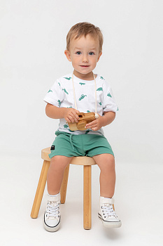 Футболка для мальчика из высококачественного трикотажного полотна. Оригинальная набивка выполнена из стойких текстильных гипоаллергенных красителей. Для удобства на плече застежка на кнопки.