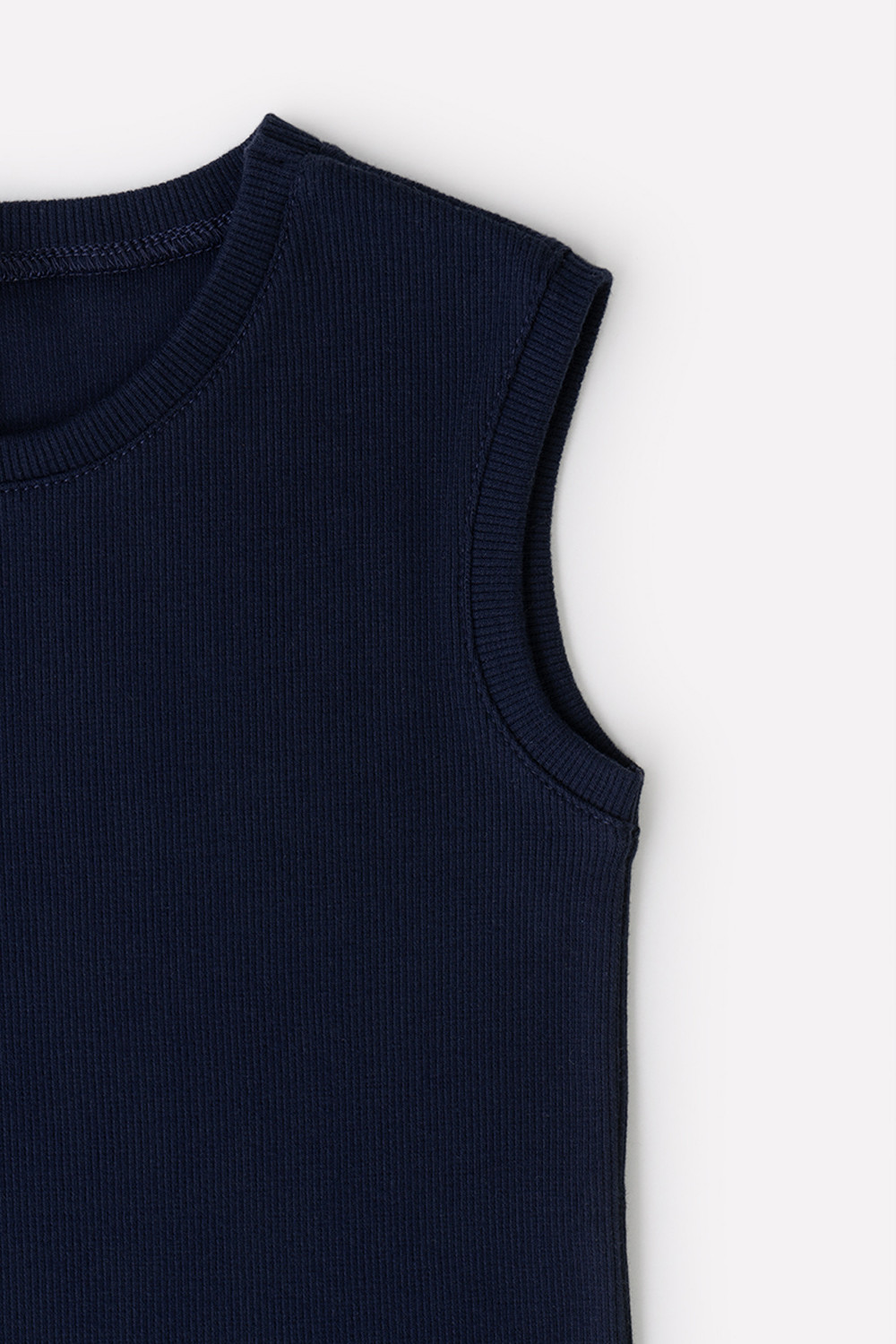 Лёгкая летняя майка в оттенке "индиго" для мальчика. Сшита из эластичного материала кашкорсе с добавлением эластана. Эластан в составе помогает изделию дольше сохранять опрятный вид и первоначальную форму.
