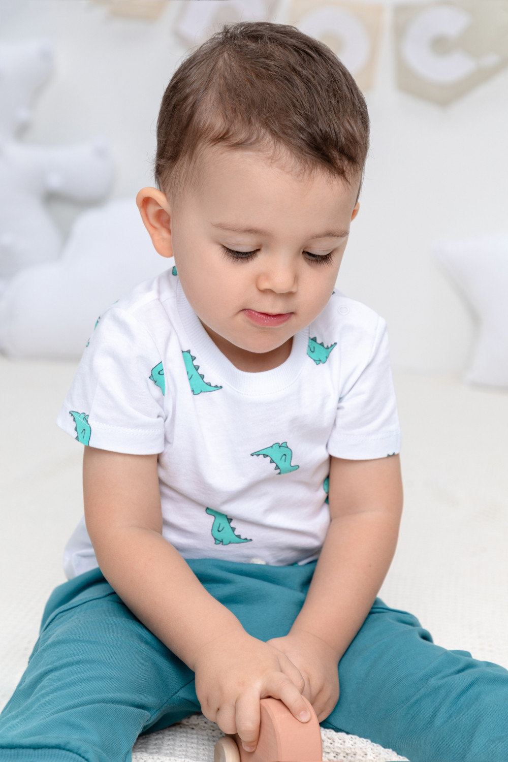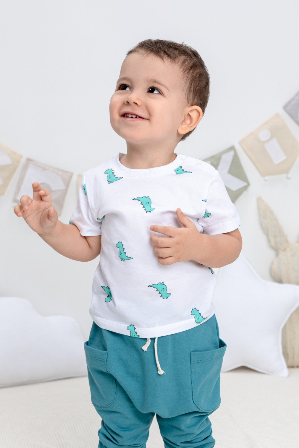 Артикул: КР 302034/белый,зеленые динозавры