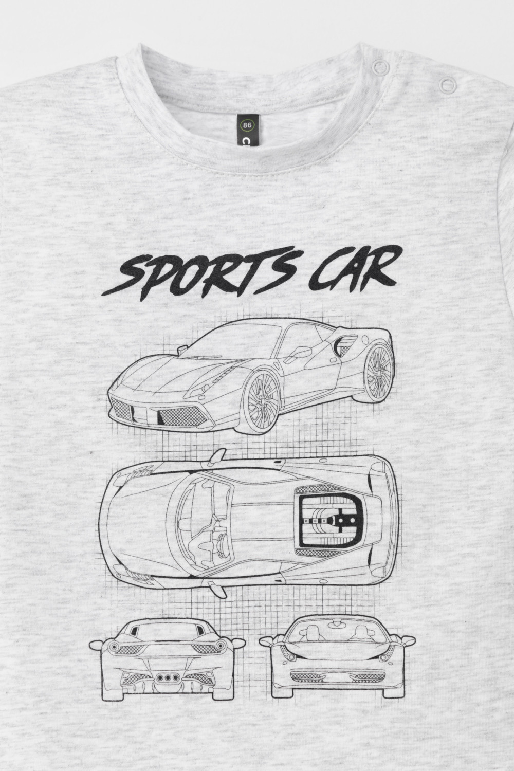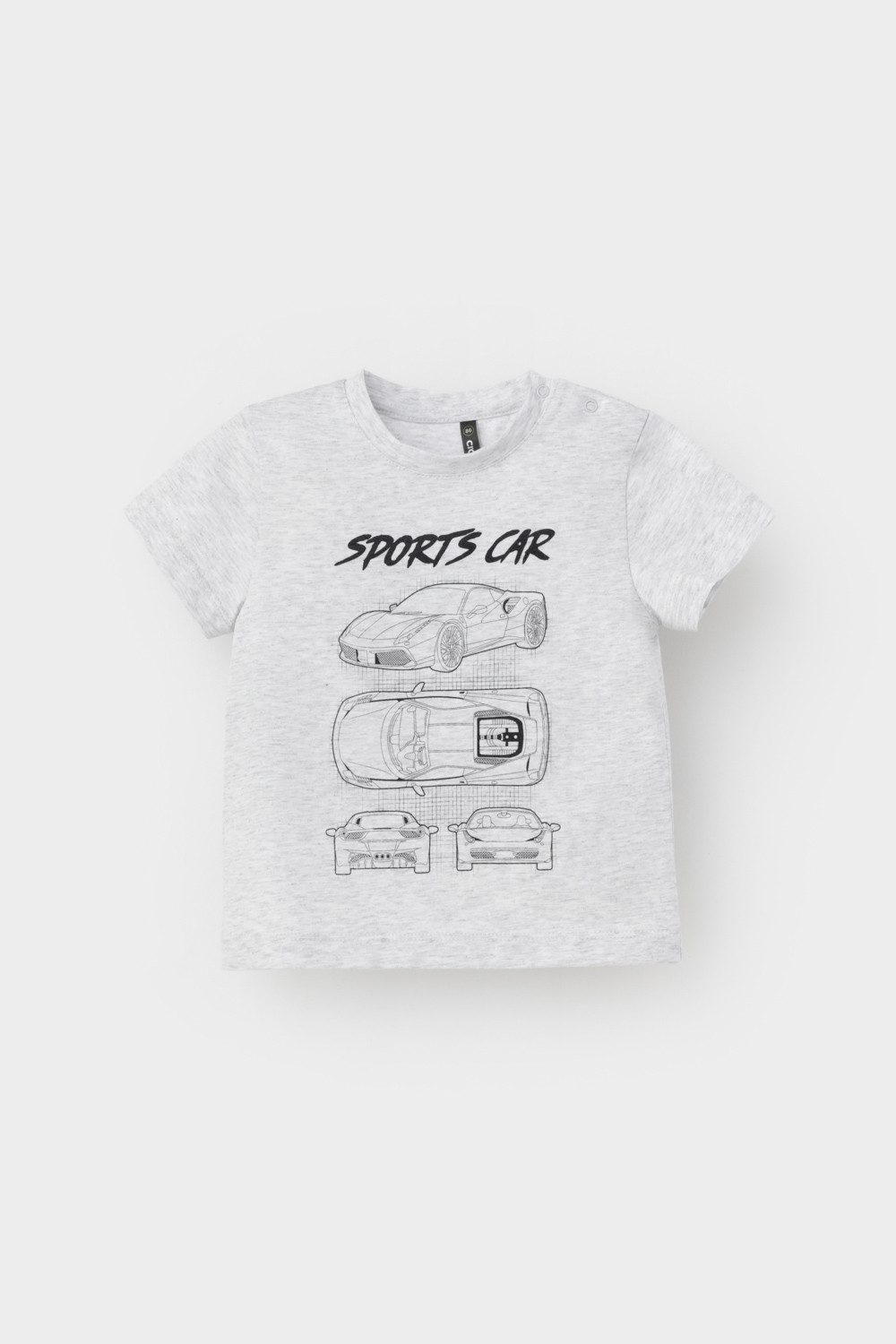 Футболка для мальчика с принтом из высококачественного трикотажного полотна. Для удобства на плече застежка на кнопки