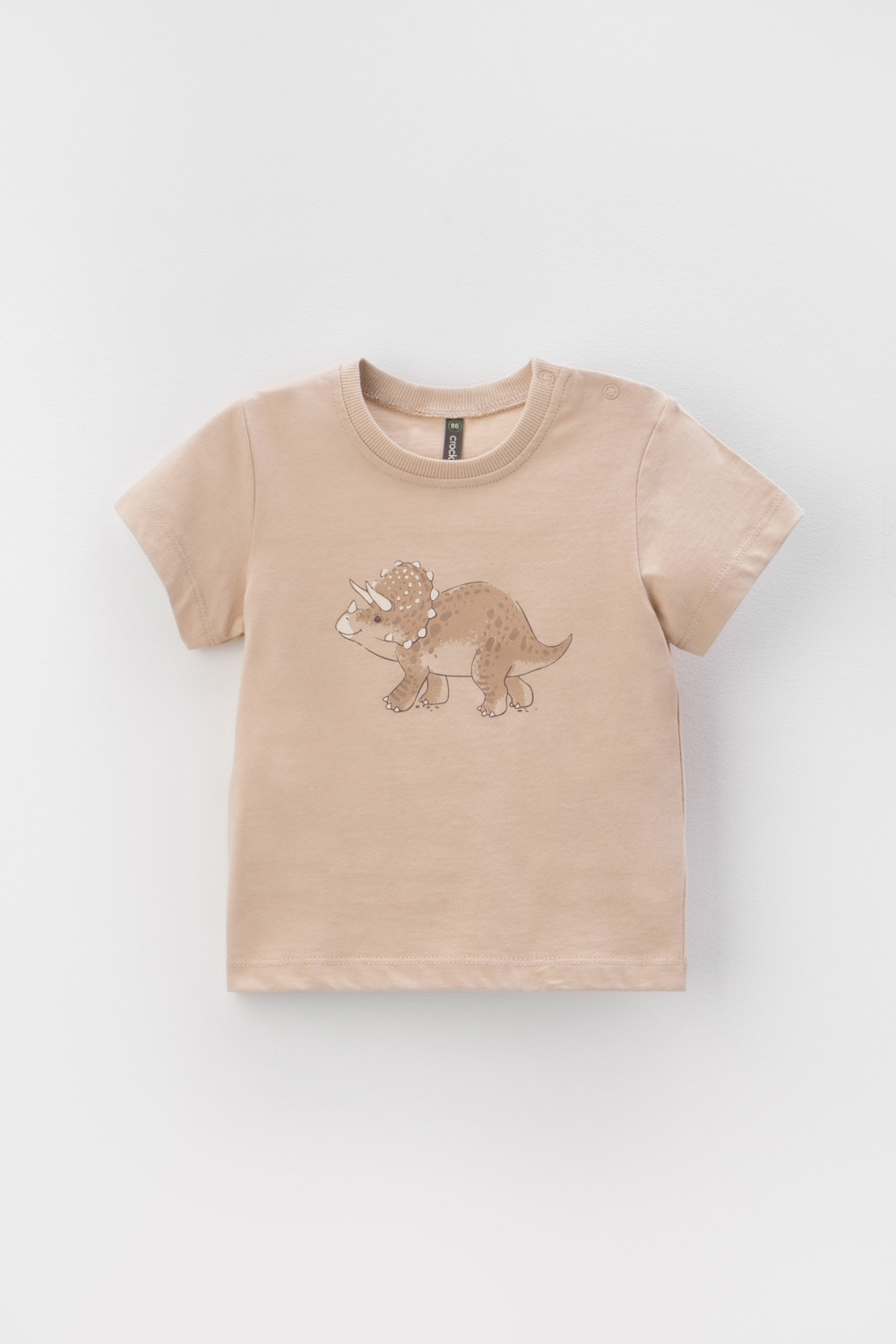 Футболка для мальчика из высококачественного трикотажного полотна. Оригинальный принт выполнен из стойких текстильных красителей. Для удобства на плече застежка на кнопки.
