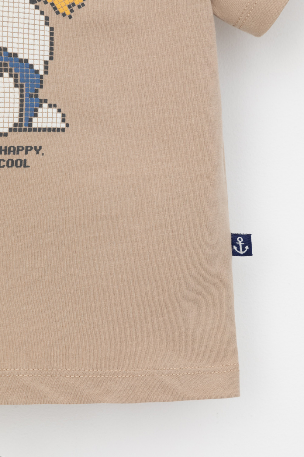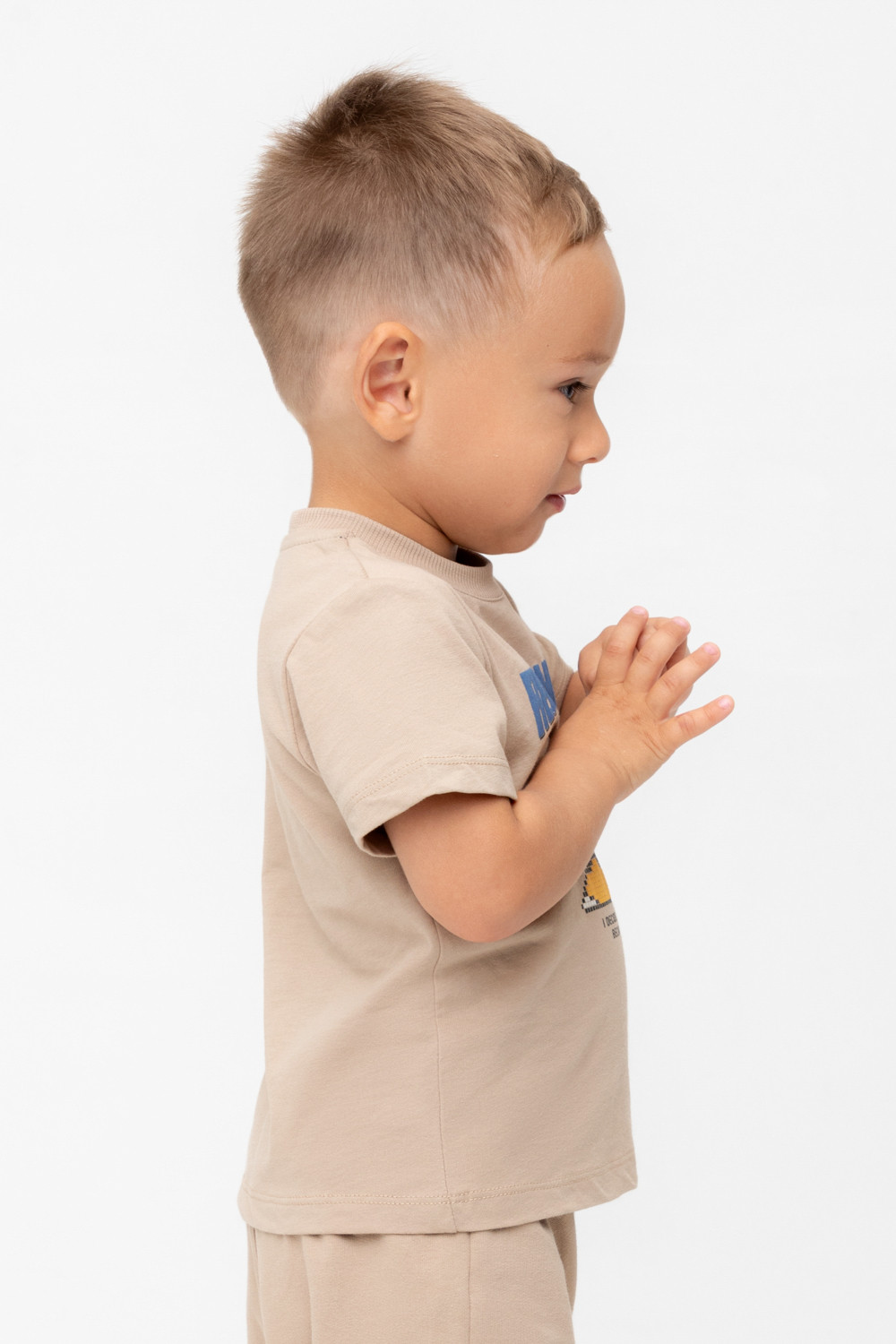 Футболка для мальчика из высококачественного трикотажного полотна. Оригинальный принт выполнен из стойких текстильных гипоаллергенных красителей. Для удобства на плече застежка на кнопки.