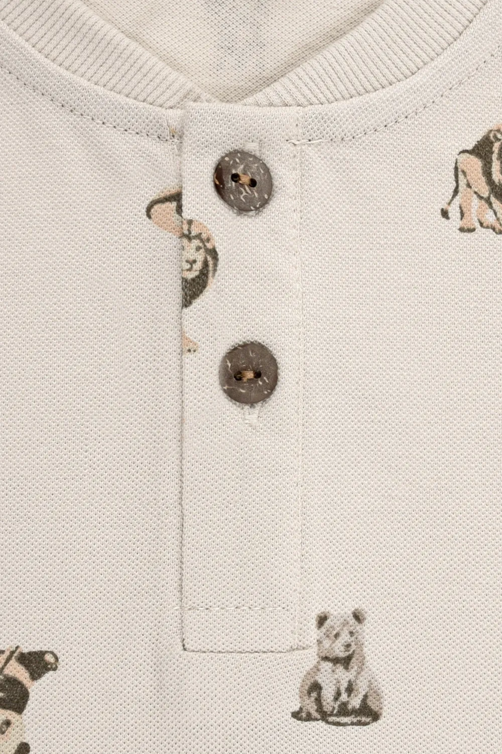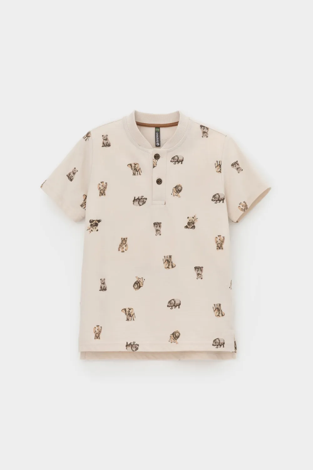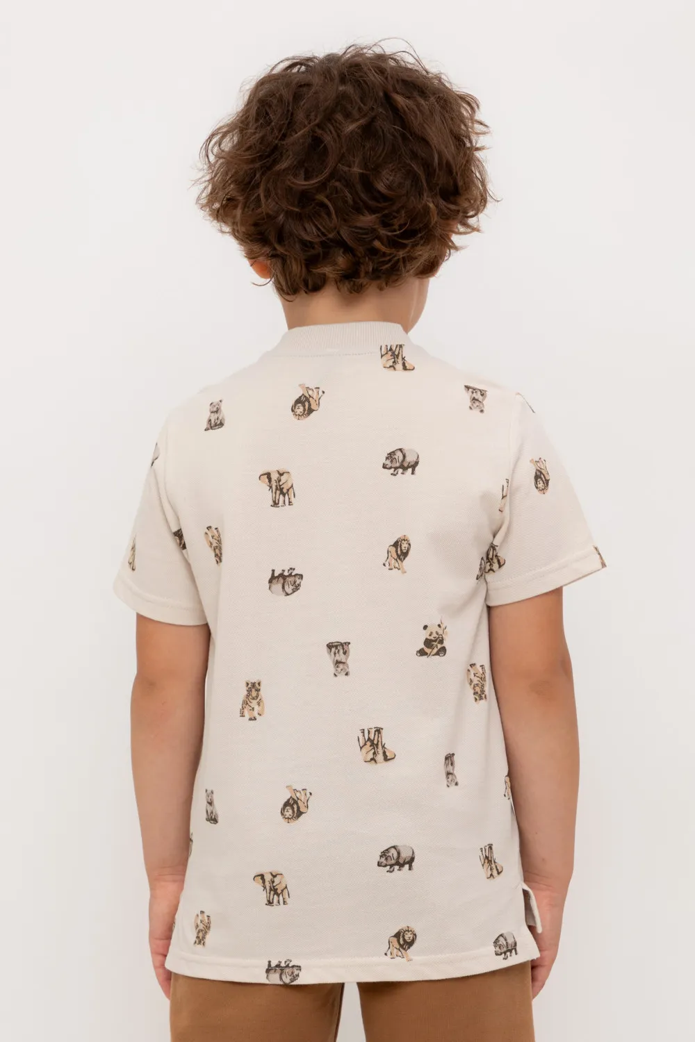 Поло для мальчика. Изготовлено из высококачественного трикотажного полотна пике. У изделия вязаный воротник и застежка спереди на пуговицы.
