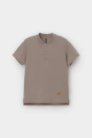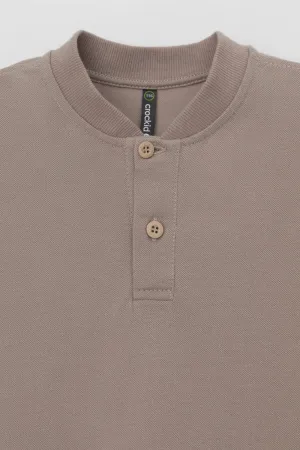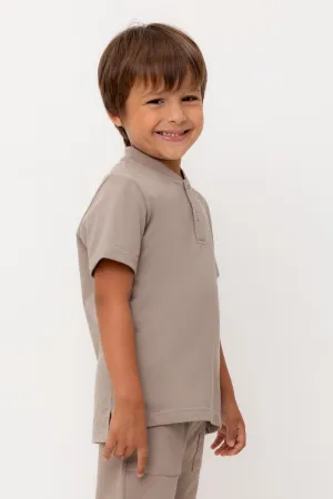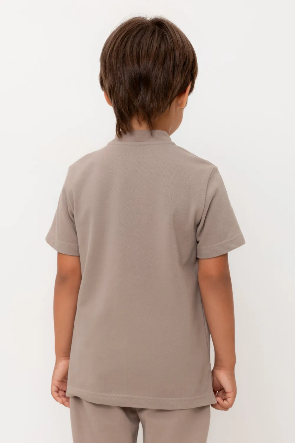 Поло для мальчика. Изготовлено из высококачественного трикотажного полотна пике. У изделия вязаный воротник и застежка спереди на две пуговицы.