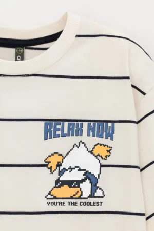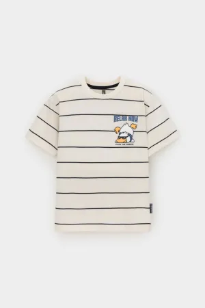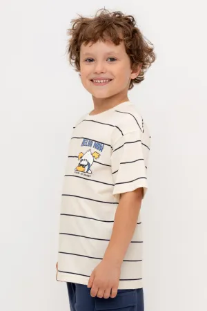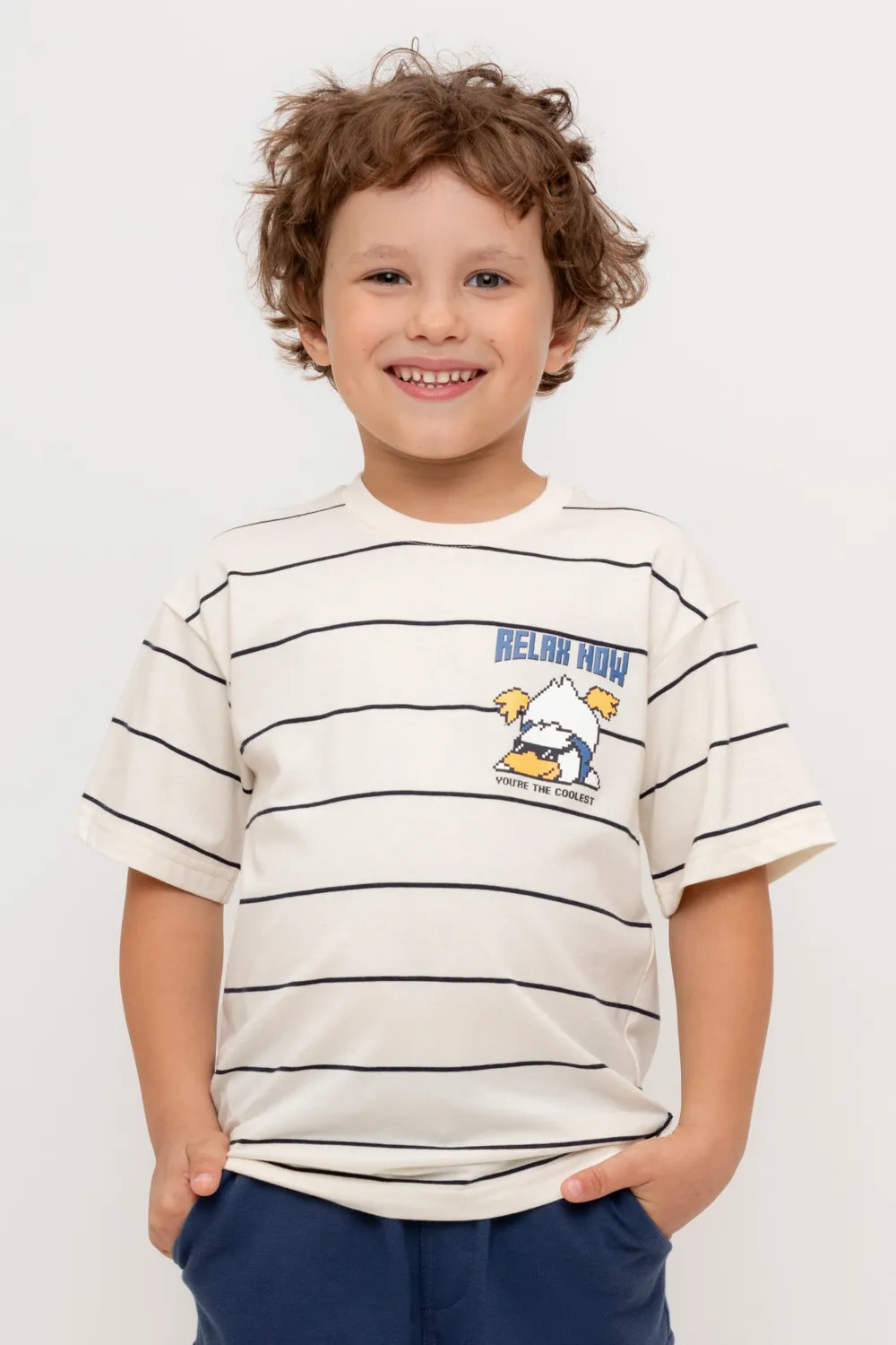 Футболка для мальчика из высококачественного трикотажного полотна. Оригинальная набивка и принт выполнены из стойких текстильных гипоаллергенных красителей. Для удобства в 92 и 98 размерах на спинке есть застежка на кнопки.