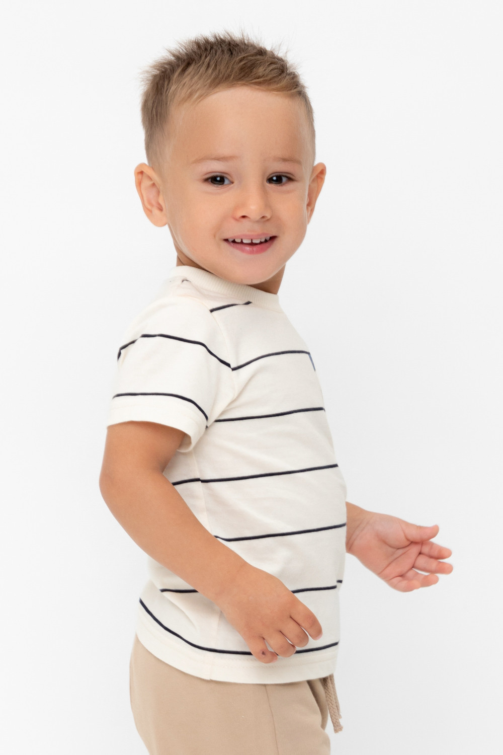Футболка для мальчика из высококачественного трикотажного полотна. Оригинальная набивка и принт выполнены из стойких текстильных гипоаллергенных красителей. Для удобства на плече есть застежка на кнопки.