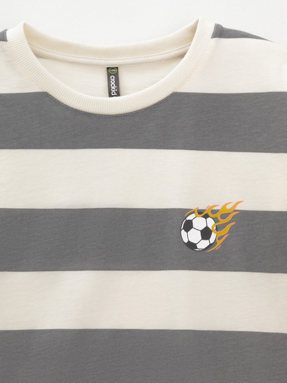 Футболка для мальчика из гладкого трикотажа, произведённого из высококачественного натурального хлопка. Оригинальный принт выполнен из стойких текстильных гипоаллергенных красителей. Изделие сохраняет цвет и форму после многократных стирок. Все трикотажные полотна производятся в соответствии с нормами швейцарского сертификата ЭкоТекс.