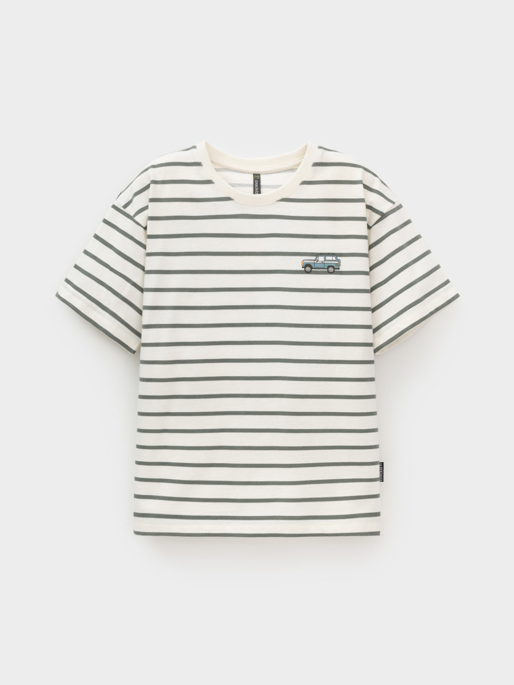 Футболка для мальчика из гладкого трикотажа, произведённого из высококачественного натурального хлопка. Для удобства одевания имеется застёжка на кнопки в размерах 92 и 98. Оригинальный принт выполнен из стойких текстильных гипоаллергенных красителей. Изделие сохраняет цвет и форму после многократных стирок. Все трикотажные полотна производятся в соответствии с нормами швейцарского сертификата ЭкоТекс.