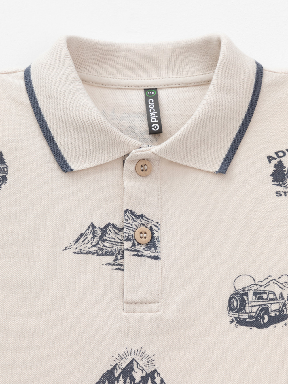 Поло для мальчика. Изготовлено из высококачественного трикотажного полотна пике. У изделия вязаный воротник и застёжка спереди на две пуговицы.  Все трикотажные полотна производятся в соответствии с нормами швейцарского сертификата ЭкоТекс.