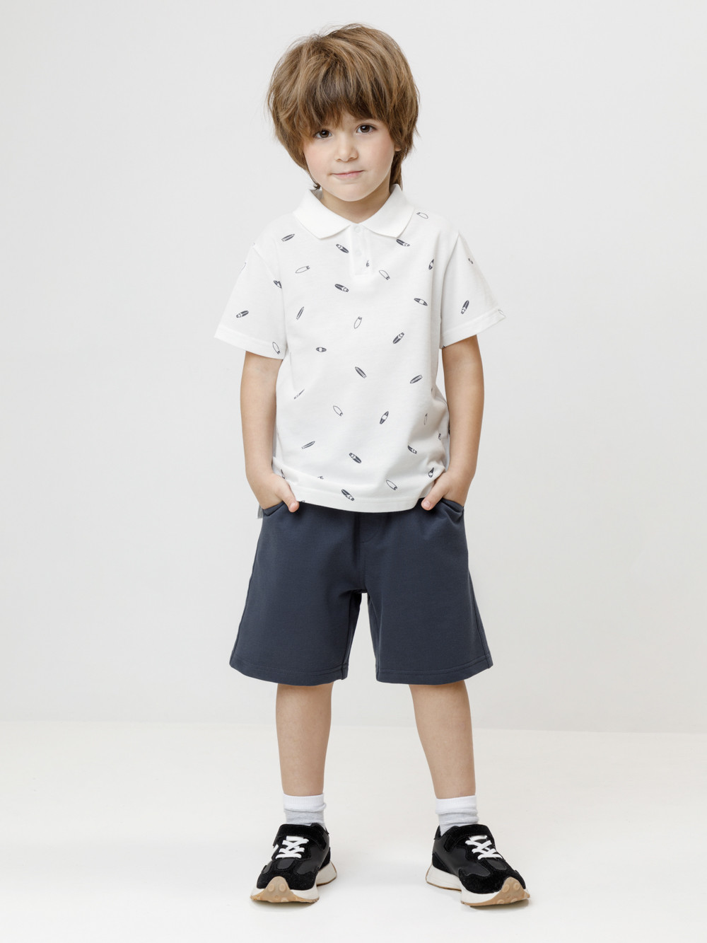 Футболка-поло для мальчика из высококачественного трикотажного полотна пике. У изделия вязаный воротник и застёжка спереди на кнопки. Поло сохраняет цвет и форму после многократных стирок. Все трикотажные полотна производятся в соответствии с нормами швейцарского сертификата ЭкоТекс.