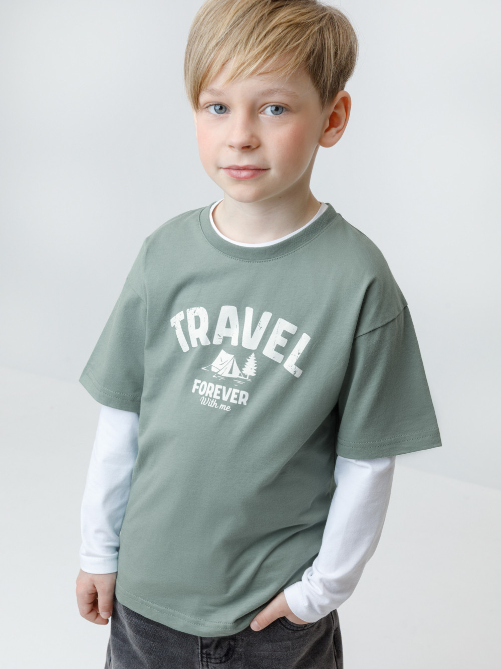 Футболка для мальчика из высококачественного трикотажного полотна. Оригинальный принт выполнен из стойких текстильных красителей. Изделие сохраняет цвет и форму после многократных стирок. Все трикотажные полотна производятся в соответствии с нормами швейцарского сертификата ЭкоТекс.