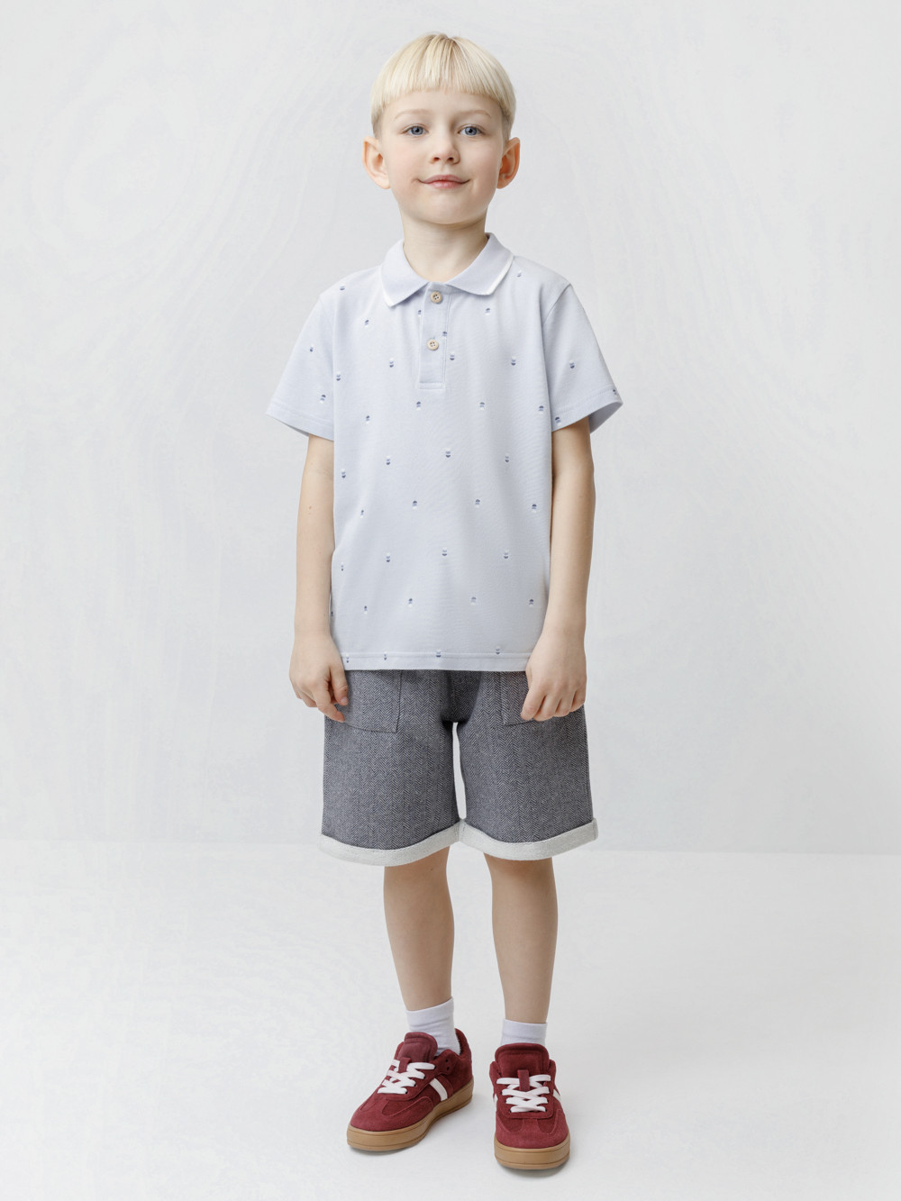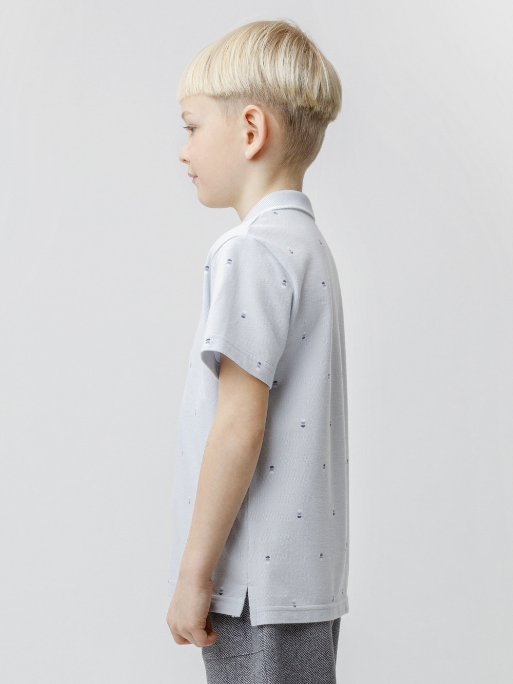 Футболка-поло для мальчика из высококачественного трикотажного полотна пике. У изделия вязаный воротник и застёжка спереди на пуговицы. Поло сохраняет цвет и форму после многократных стирок. Все трикотажные полотна производятся в соответствии с нормами швейцарского сертификата ЭкоТекс.
