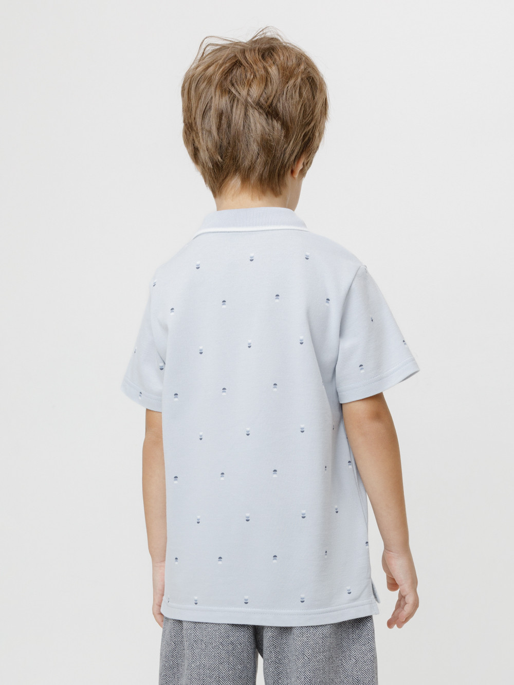 Футболка-поло для мальчика из высококачественного трикотажного полотна пике. У изделия вязаный воротник и застёжка спереди на пуговицы. Поло сохраняет цвет и форму после многократных стирок. Все трикотажные полотна производятся в соответствии с нормами швейцарского сертификата ЭкоТекс.